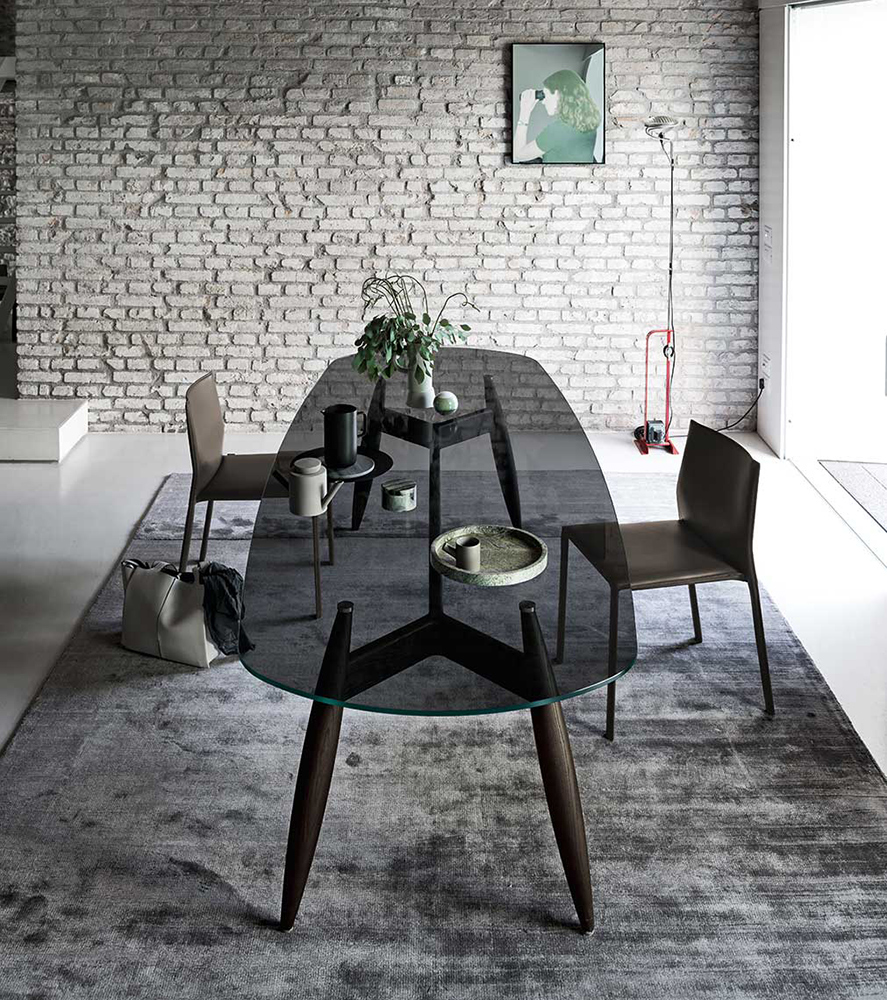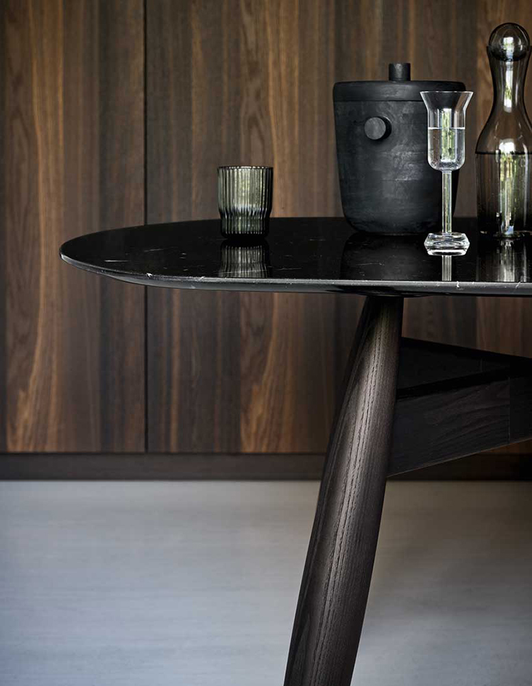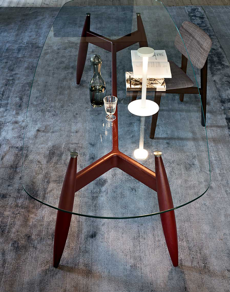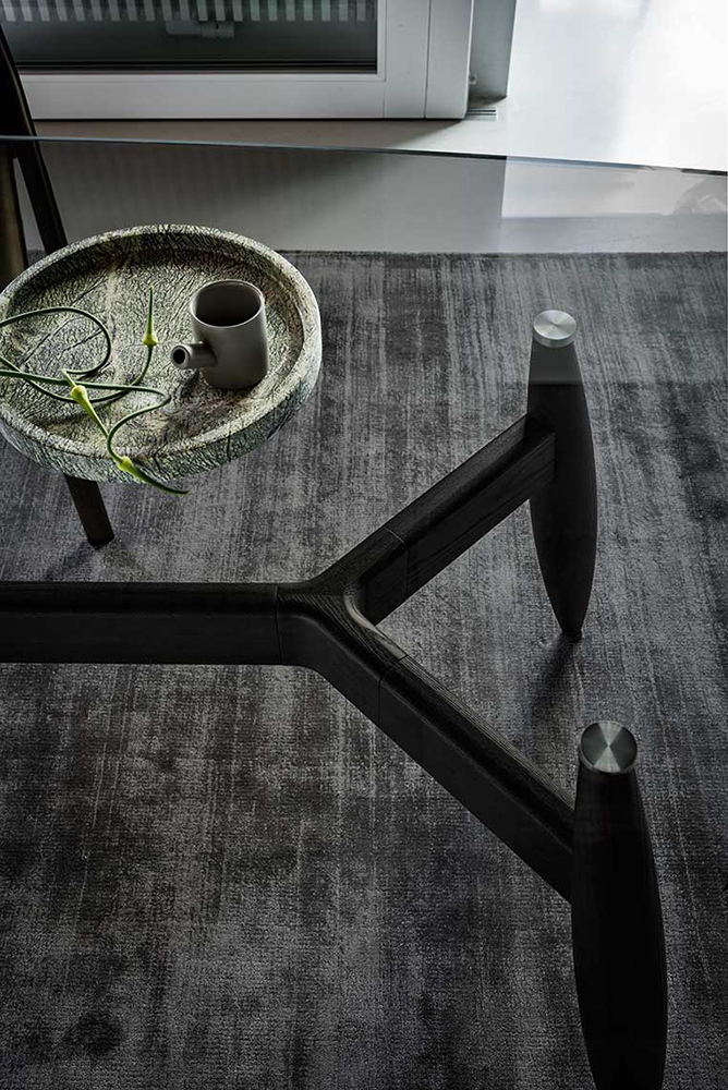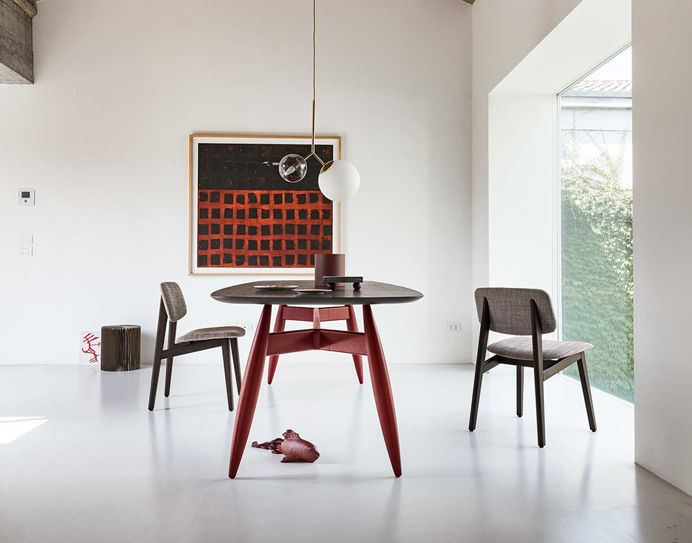 FUSELLO is a table born out of tradition. The base is made up of spindle legs, evoking the spool for winding thread used to make Cantu lace. The table’s innately soft look is given not only by these legs but also by the different physical forms the top can take on, and the use of wood, a material offering the very best sculptural qualities.