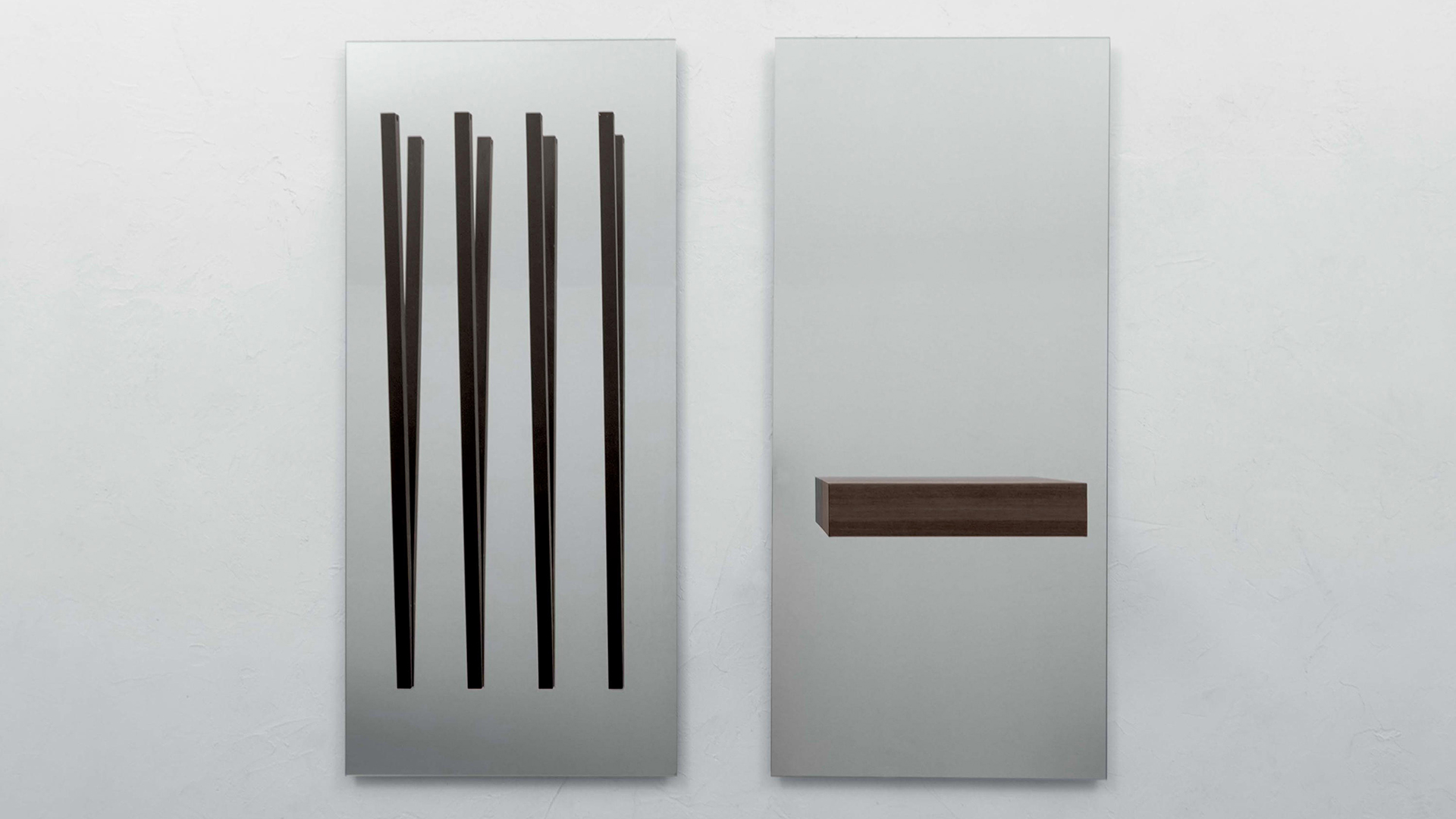 In Alicante, designer Lovadina decided to reunite different objects functions in just one piece of design. A square, full glass mirror now becomes a useful coat-hanger, or is equipped with an extremely adaptable drawer. The more the functions are, the better the aesthetic: a LED lighting system with touch control makes Alicante shine, and turns it into an elegant wall-lamp.