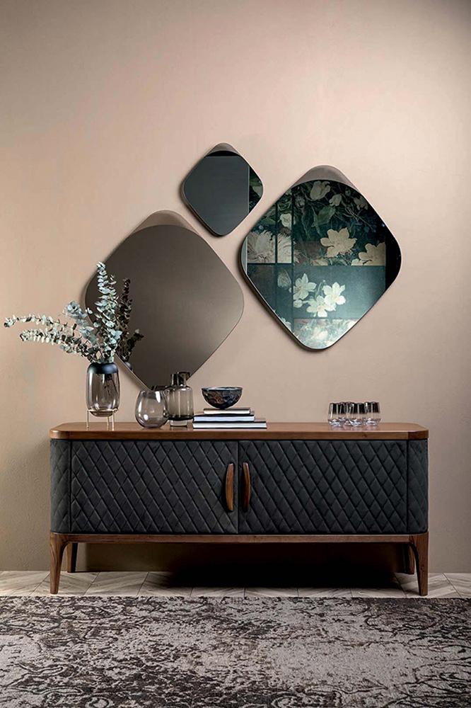 Shaped mirrors shaded in transparency to give a touch of elegance to your every reflection. Intense in the bronze version and refined in the smoked one: choose the most striking combination.