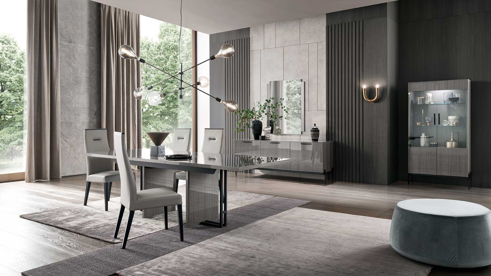 The Alf Italia Novecento large extending dining table features a Silver wood finish table and base.