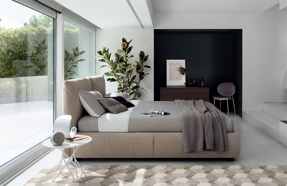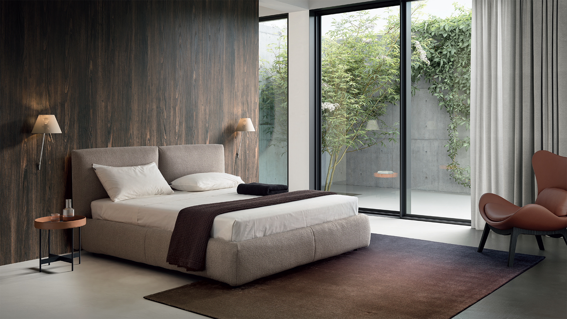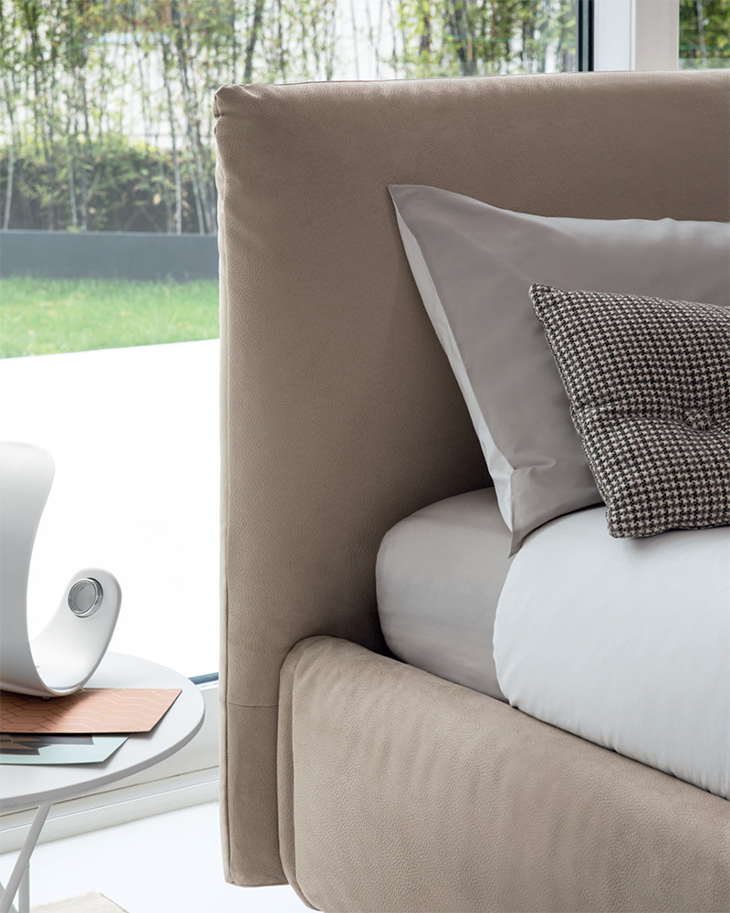 Magenta is an unfussy linear bed with a pristine well-proportioned design which makes it easy to fit into any setting. Its unassuming beauty turns the bed into a hospitable haven and gives the bedroom area an elegant laid-back vibe. The item is available with three versions of the feet in wood and one in metal with the option of choosing the look and height from the ground that suits the customer best. The Magenta bed is available with a fixed bed base or container unit. Can be upholstered in fabric or leather.