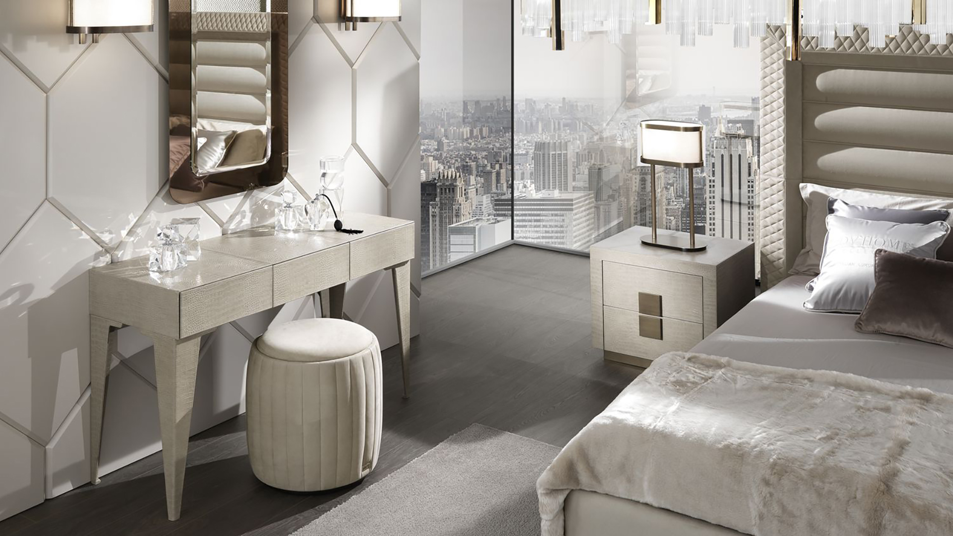 Console with 3 drawers. Other finishes and upholstery options are available.