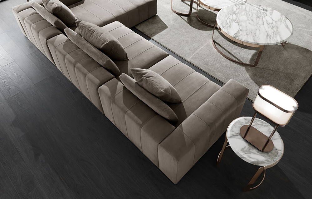 The Edmond sofa is a modular design with the possibility of installing a canapé section. The sofa is able to change, depending on the layout of your living room. It is offered in linear and corner configurations. It has three-dimensional shapes, a fully upholstered frame and a stable flat base.