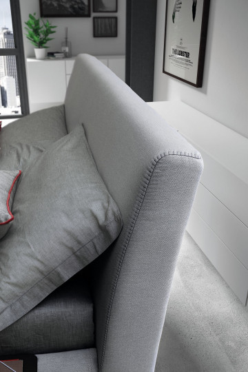 A bed that knows how to break the rules imposed by rigid structural geometries, where the line becomes a curve and the latter gives way to the presence of a flush seam. The modern texture of the upholstery fabric gives uniform elegance to the model.