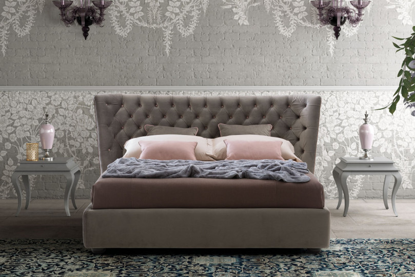 Caravaggio`s classical outline is painted by the conscious involvement of its eloquent finishes. The edge`s clear-cut identity defines with marked strokes the overflowing liveliness of the headboard, which, by bending at the sides, increases the dynamism of a luxurious and refined capitonné.