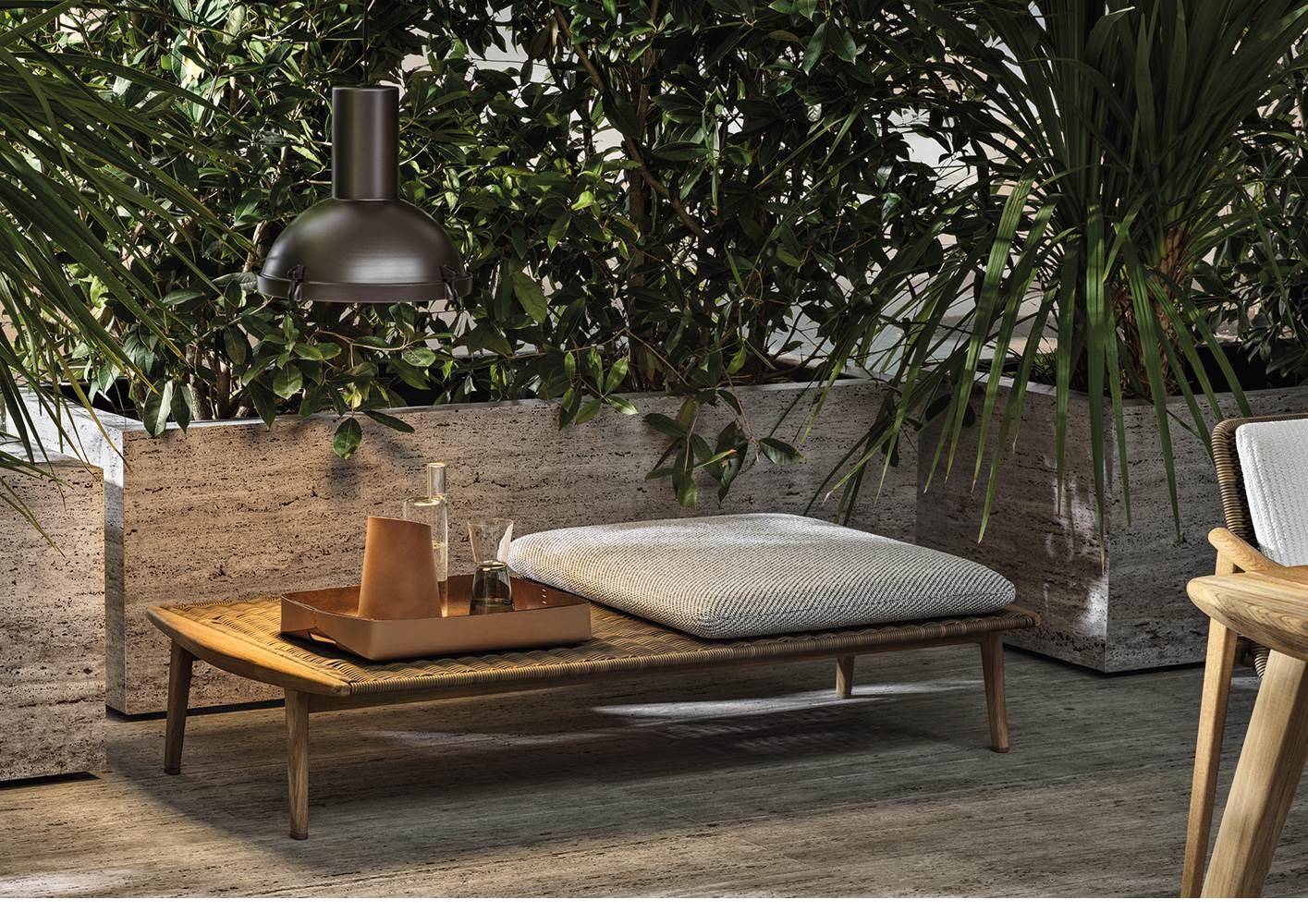 With a completely innovative approach, the fine cabinet-making process used for the manufacturing of outdoor wooden furniture is applied to a family of outdoor furnishing pieces in solid teak, combining sophisticated workmanship with an ultra-contemporary design.