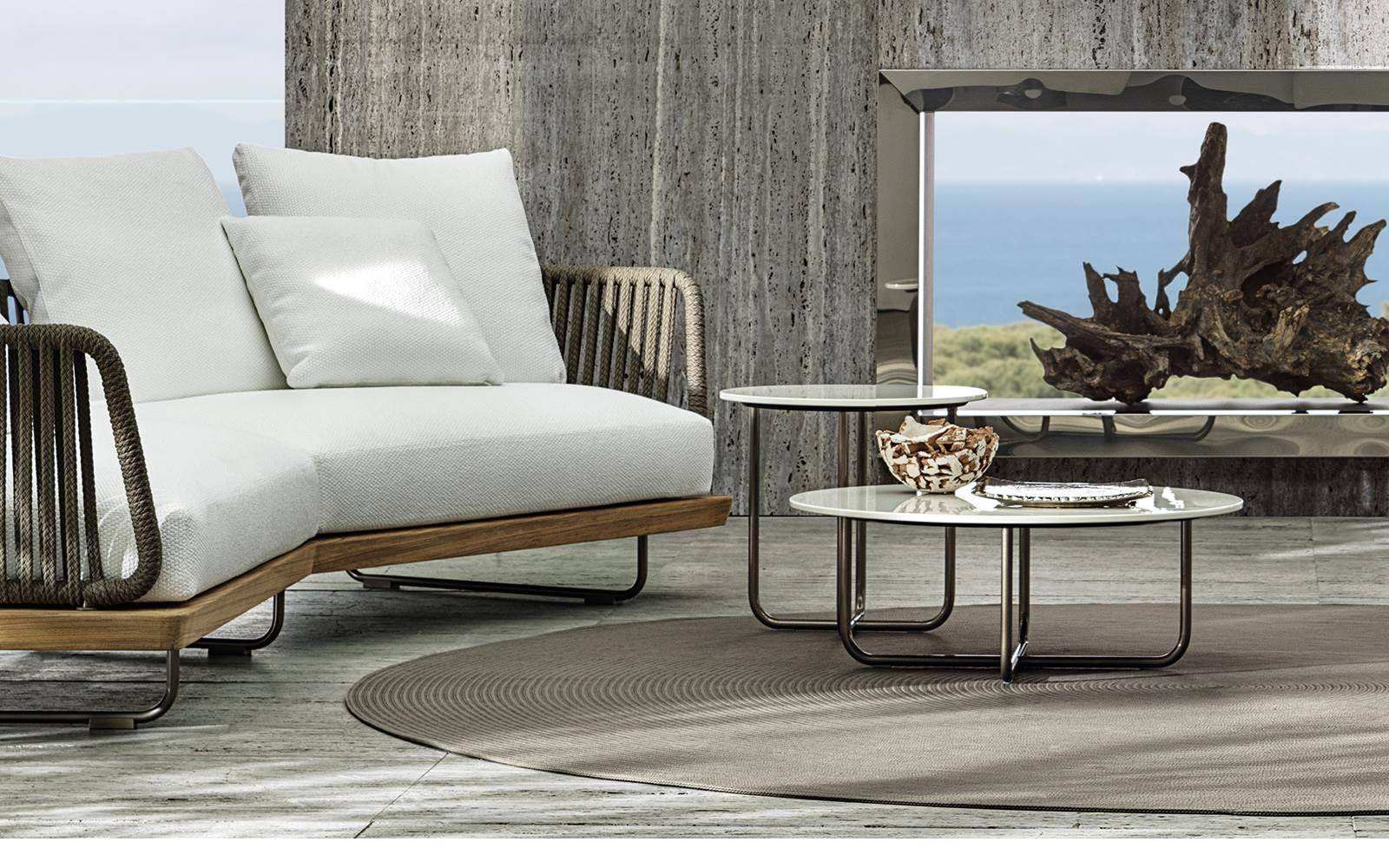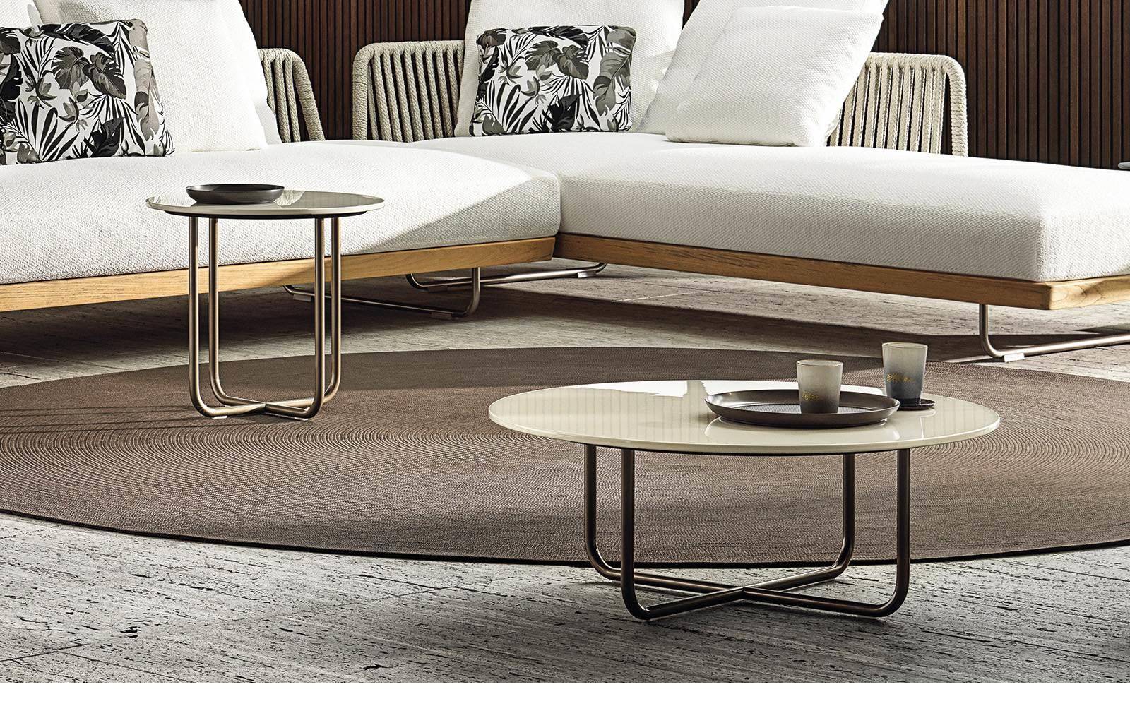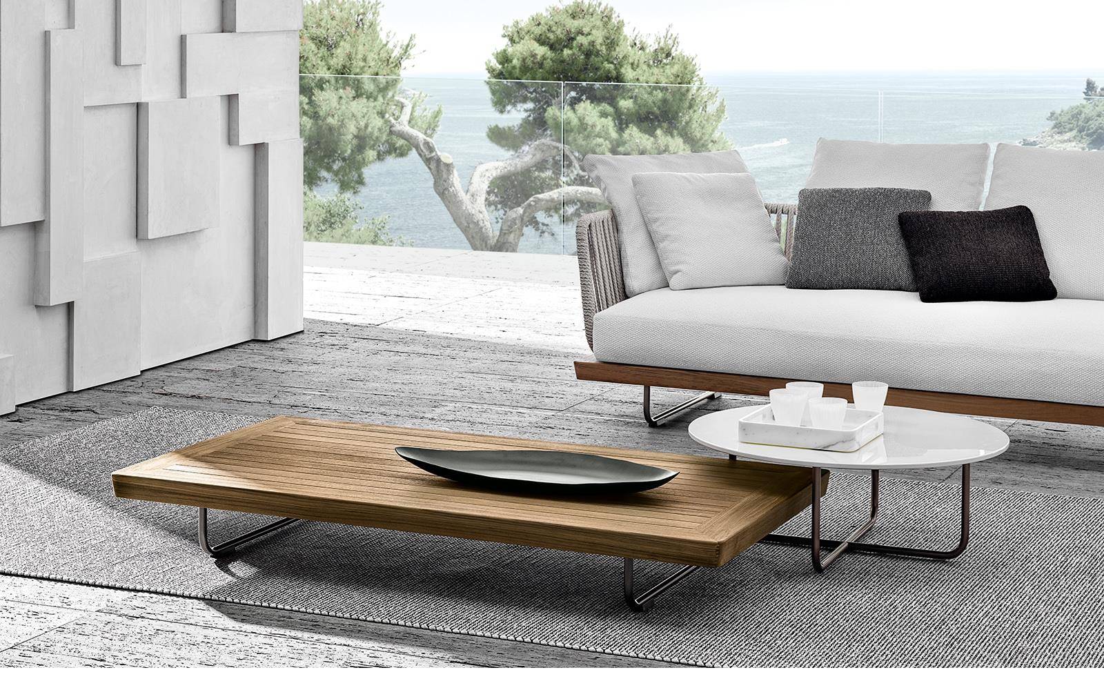 The Sunray Meg family hosts a series of versatile, practical coffee tables in various sizes and heights that blend in perfectly with the most diverse compositions of the Outdoor collection.