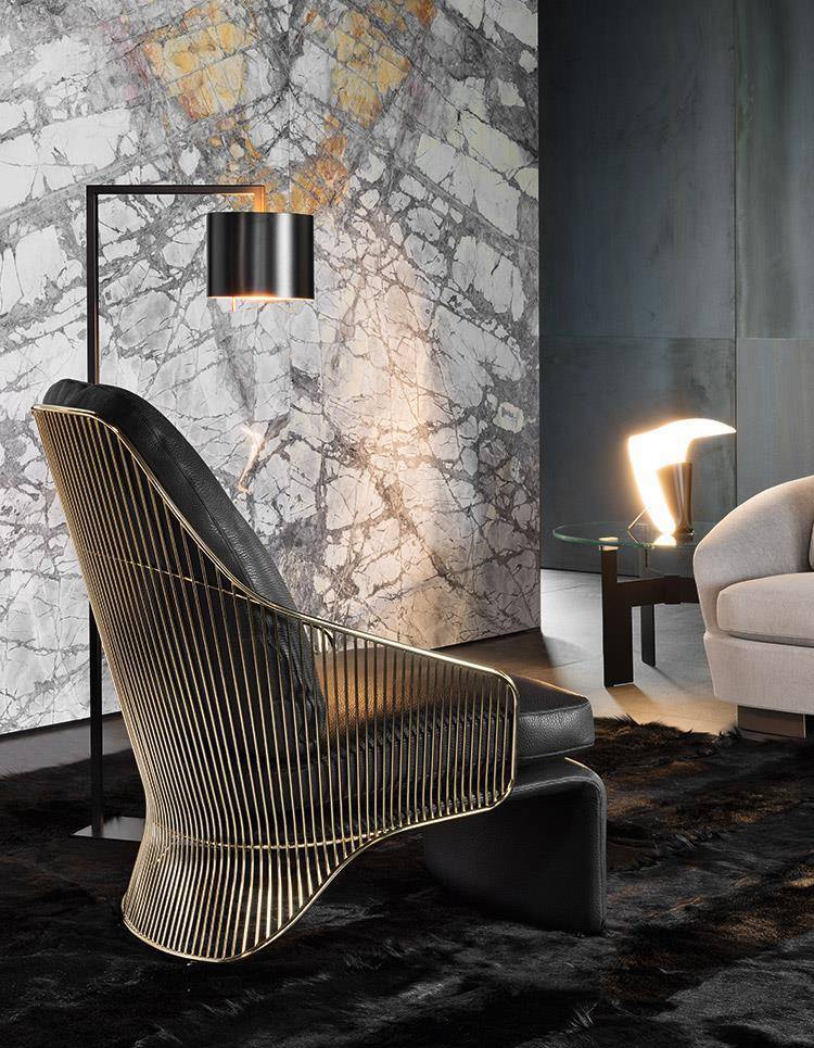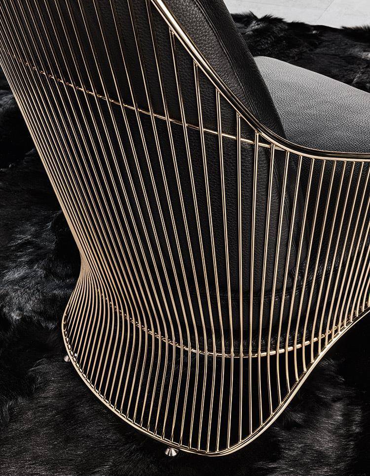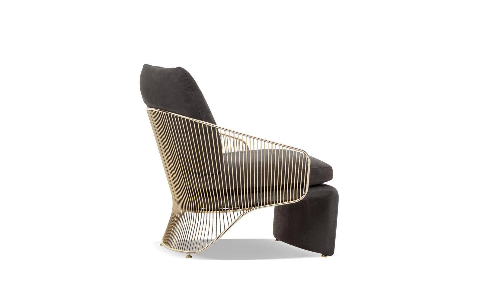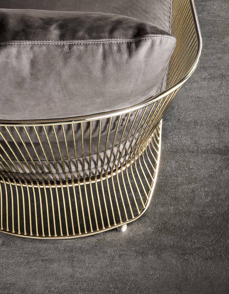 The Colette armchair comes in two heights and two finishes: Light Gold and Black-Nickel.
