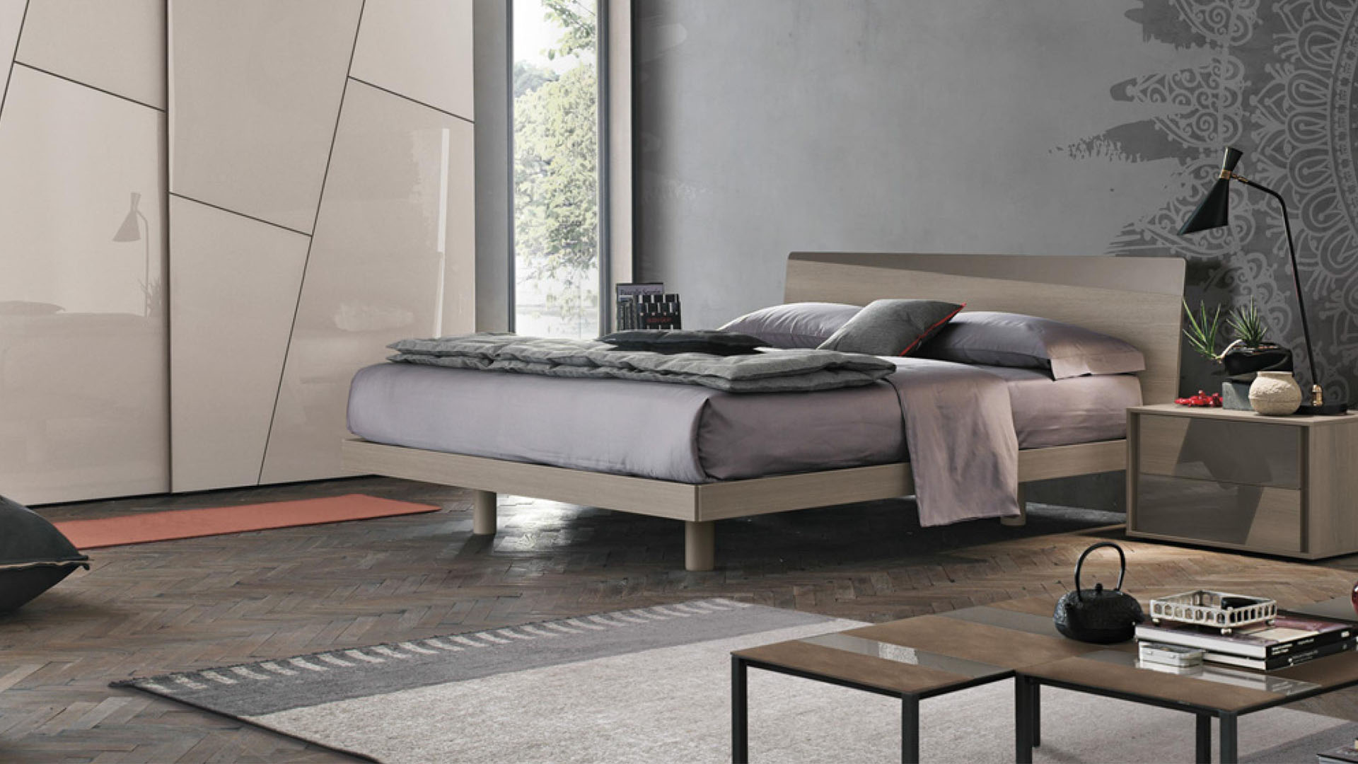 CHARLIE bed the diagonal insert that crosses and personalizes the headboard, is the ideal choice for those looking for an essential and minimal bed but with a certain amount of personality.