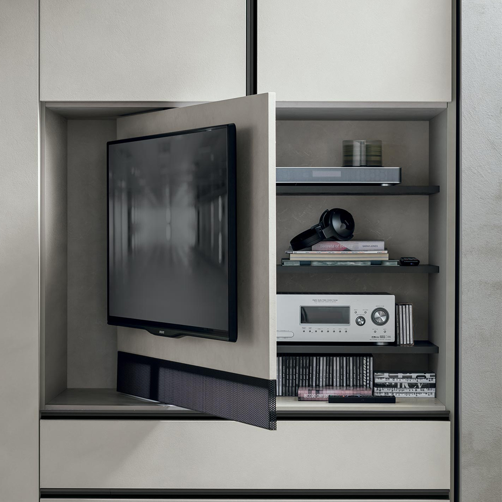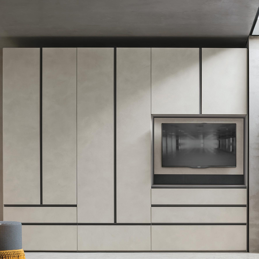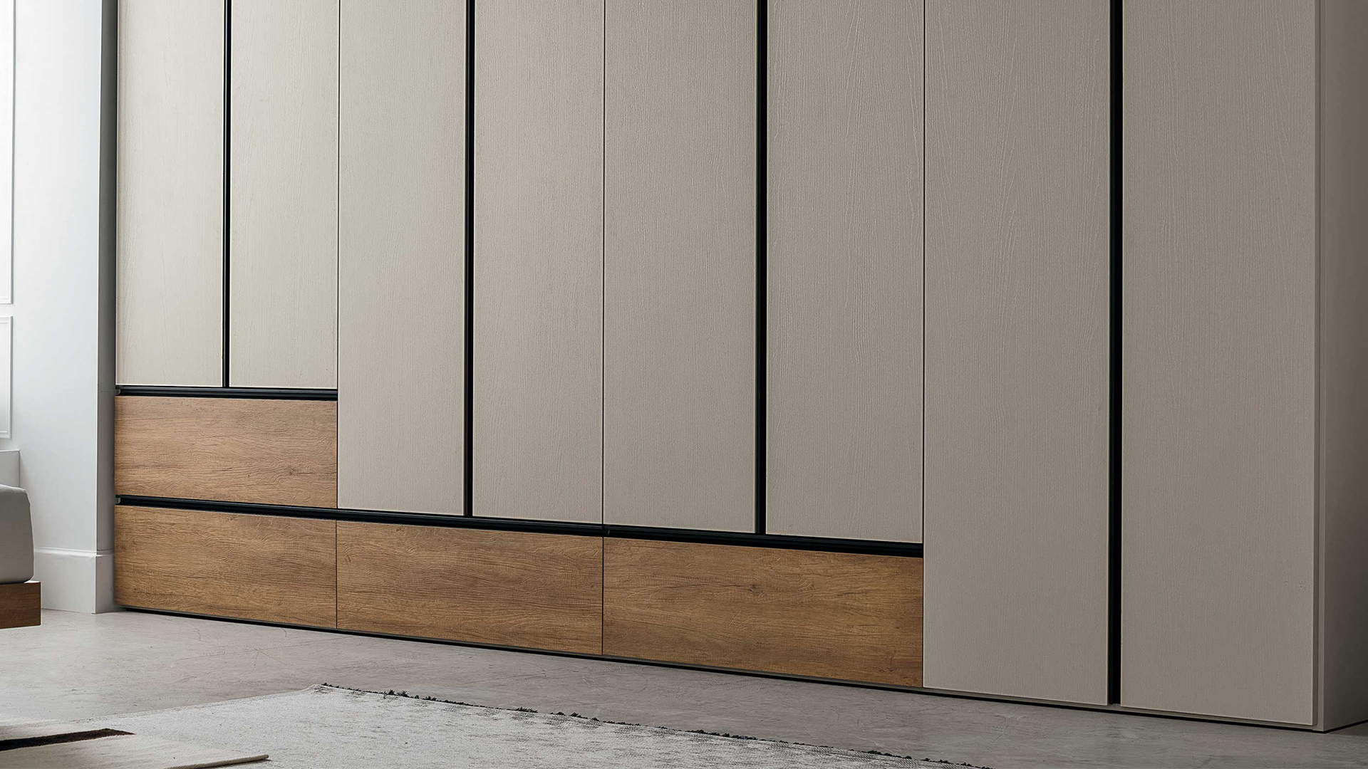 Hinged door and removable drawers: you can customize the way this wardrobe`s modules are arranged as well as its finishes and sizes. The drawers - usually hidden away on the inside - come out into the open an add a touch of originality to the wardrobe.