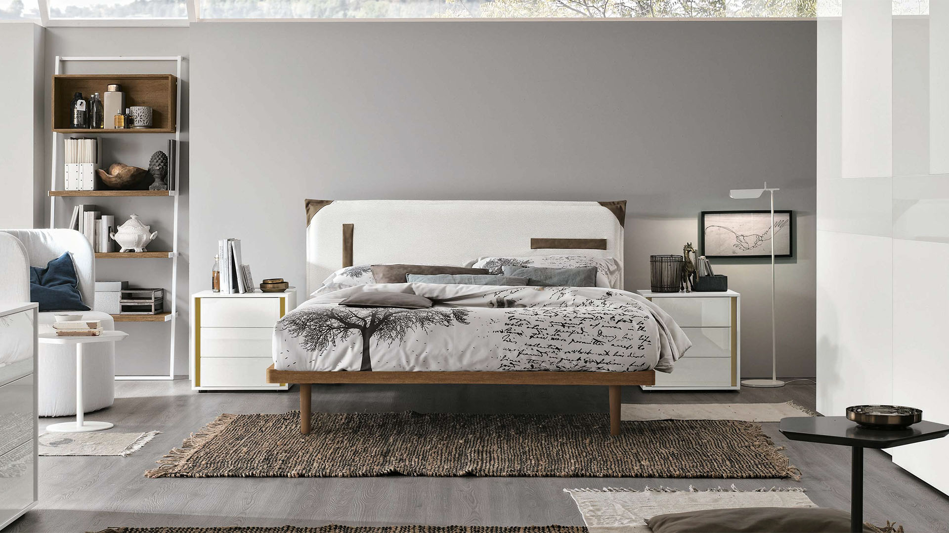 Just like a practical garment, the headboard has two pockets to hold magazines or other objects, giving the bed a modern, multifunctional appeal. The insert in eco-leather, eco-nubuck or leather direct the eye to the practicality of these details.