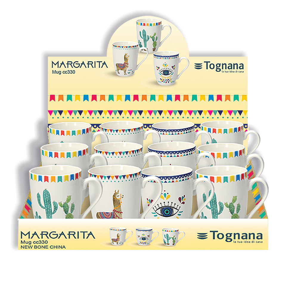Mug of the Iris Margarita series in natural white color with a pattern. Modern colorful colors and décor, reminiscent of South America, will make your breakfast or snack fun and carefree. All mugs have their own non-repetitive pattern, so that each product is unique in its own way, combined with each other in style and the smallest details.