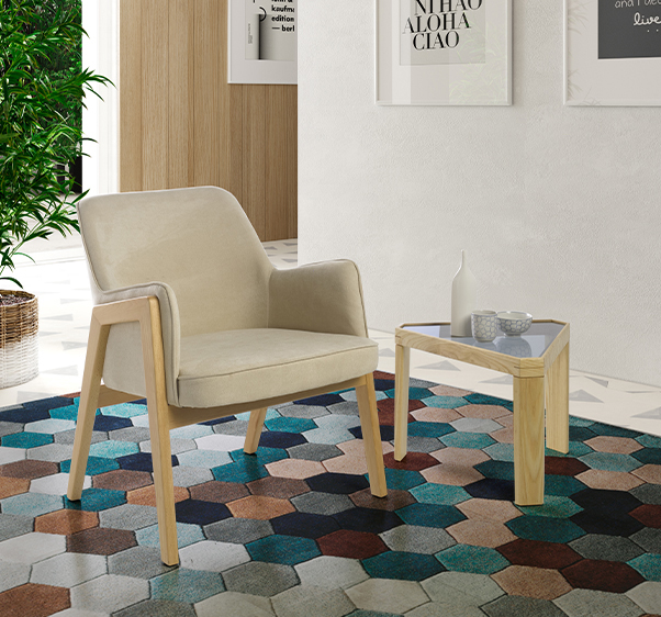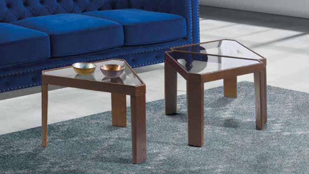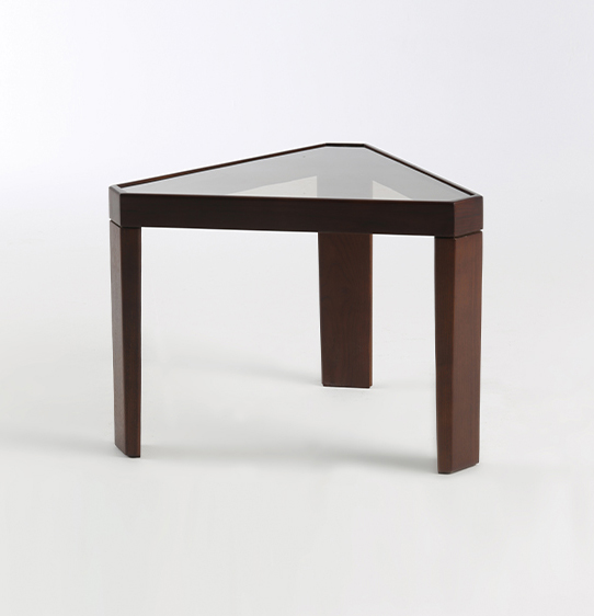 An original triangular table that looks good no matter how you turn it. You can make an ensemble of identical tables, or you can put them on top of each other and get a convenient multifunctional console.