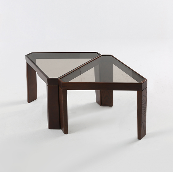 The legs and base of the table are made of natural ash wood, while the top is made of smoked tempered glass 5 mm thick.
