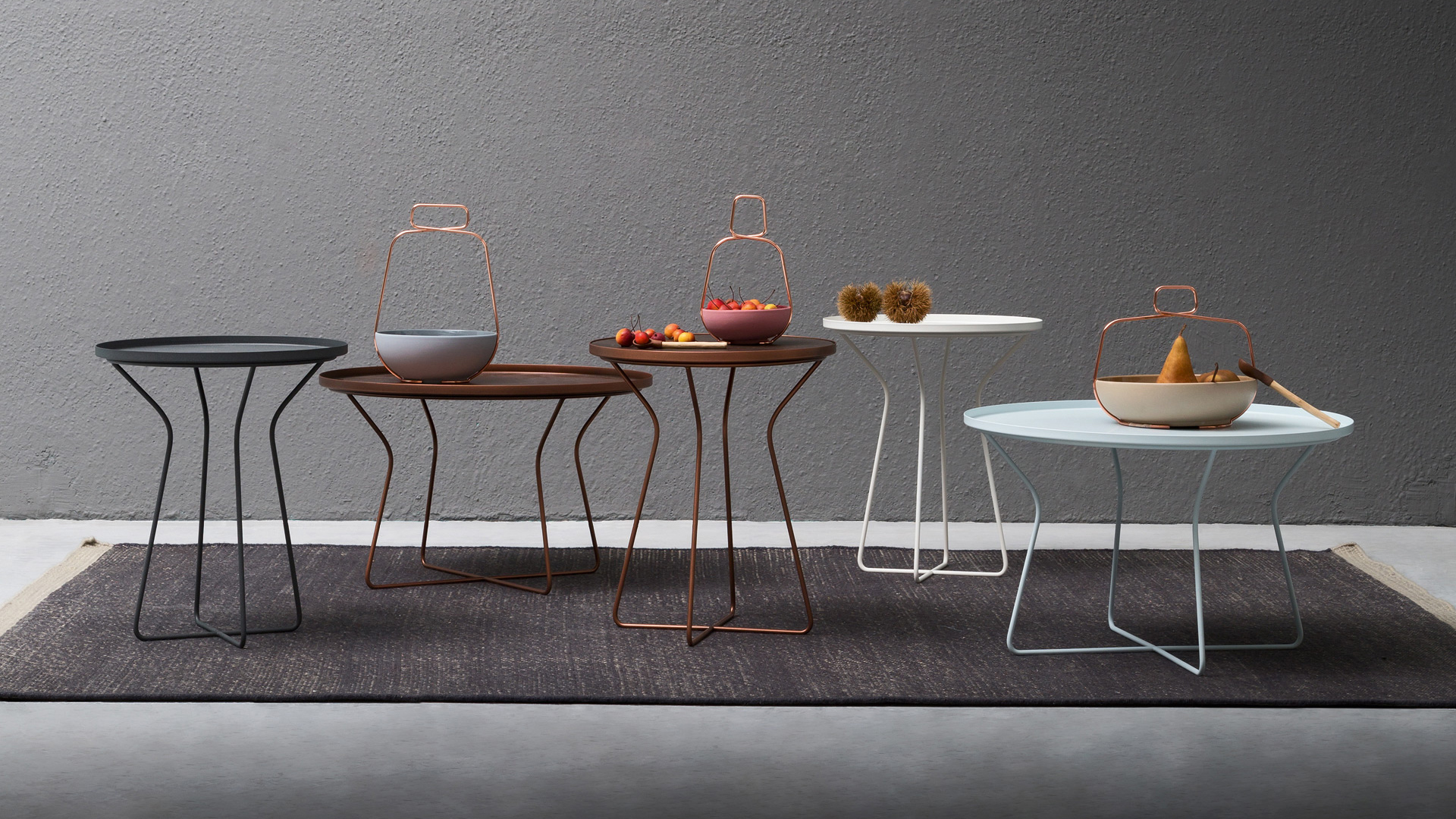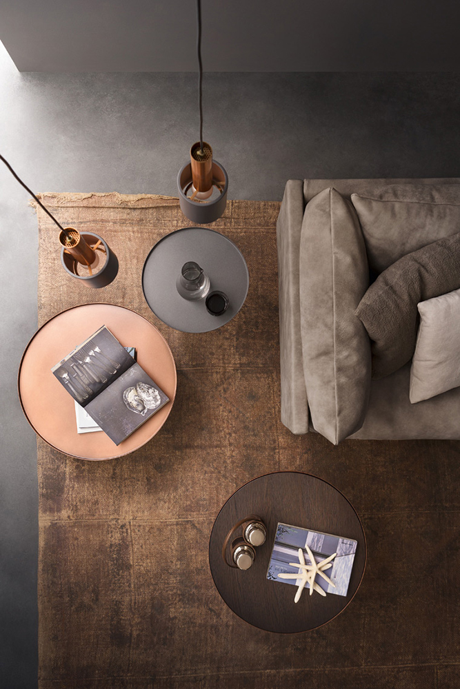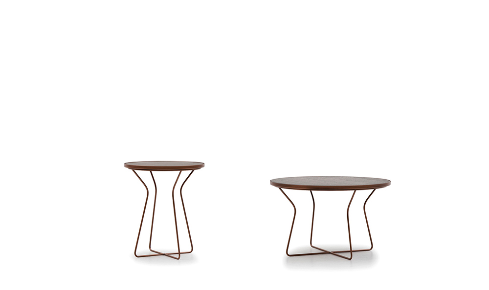 Tuft is a round occasional table with a metal structure available in 2 sizes. The top is made like a “tray”, which can be combined with a wooden surface.