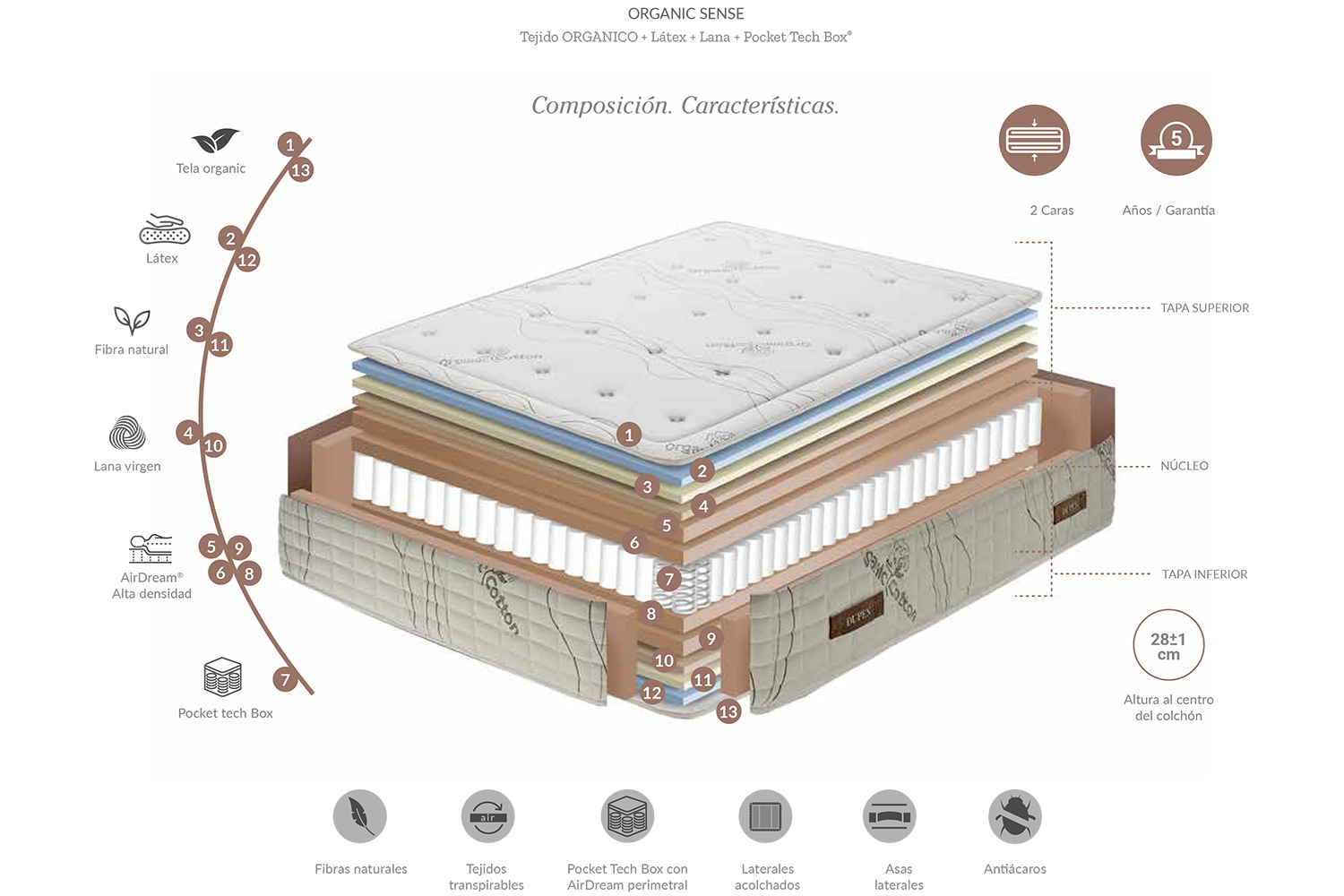 Աճում է բնական օրգանական գործվածքներից և ավանդական նյութերից, ինչպիսիք են բնական բուրդը և բնական լատեքսը, պատրաստված ներքնակների պահանջարկը: Մենք ստեղծել ենք էկոլոգիապես մաքուր ORGANIC SENSE ներքնակ: Բարձրորակ ներքնակ՝ պատրաստված ամենալավ բնական նյութերից, փոքր զսպանականերից և բնական լցոններից, որոնք պահվում են տեղում մեր բացառիկ բամբակյա փոմփով փնջիկների շնորհիվ: