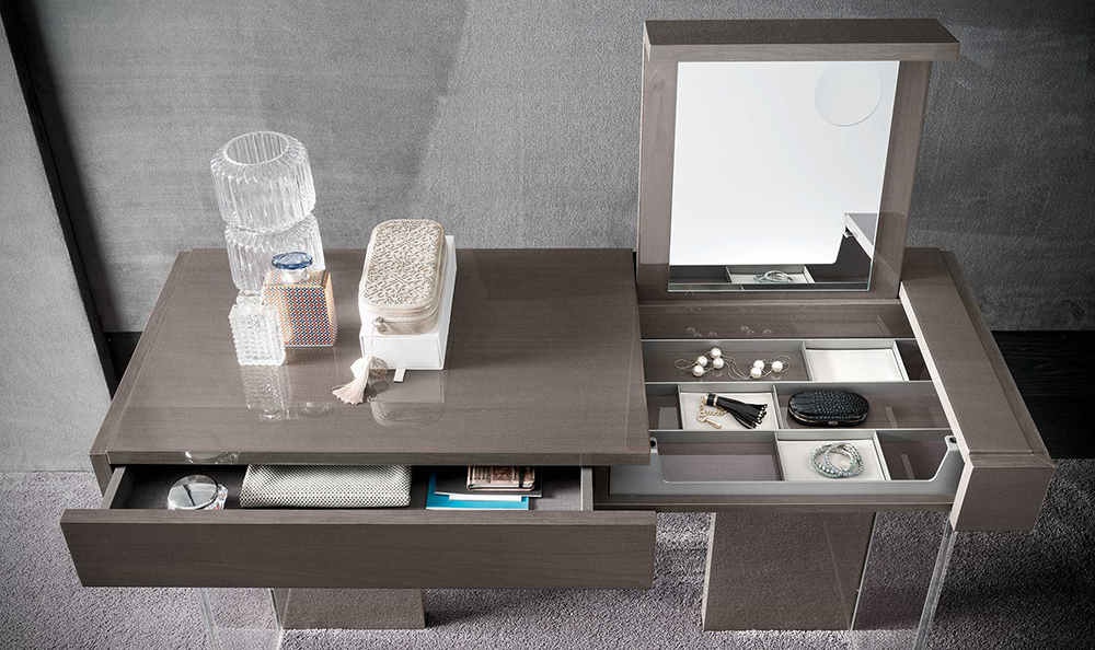 Изготовленная из натурального шпона и покрытая лаком High Gloss, мебель прослужит долго и выглядит действительно потрясающе. Коллекция Athena имеет акриловую основу. Кровать-платформа Athena предлагается в трех размерах: Queen, King и California King. Также к ней прилагается полный комплект мебели: тумбочки, комод, зеркало, комод, великолепный туалетный столик и шкафы разных размеров.