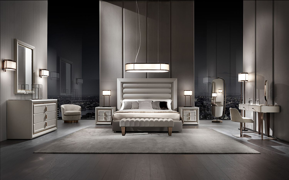 Двуспальная кровать с высоким мягким изголовьем. Наполнение: полиуретан. Возможен вариант кровати с контейнером. Возможны другие варианты обивки.