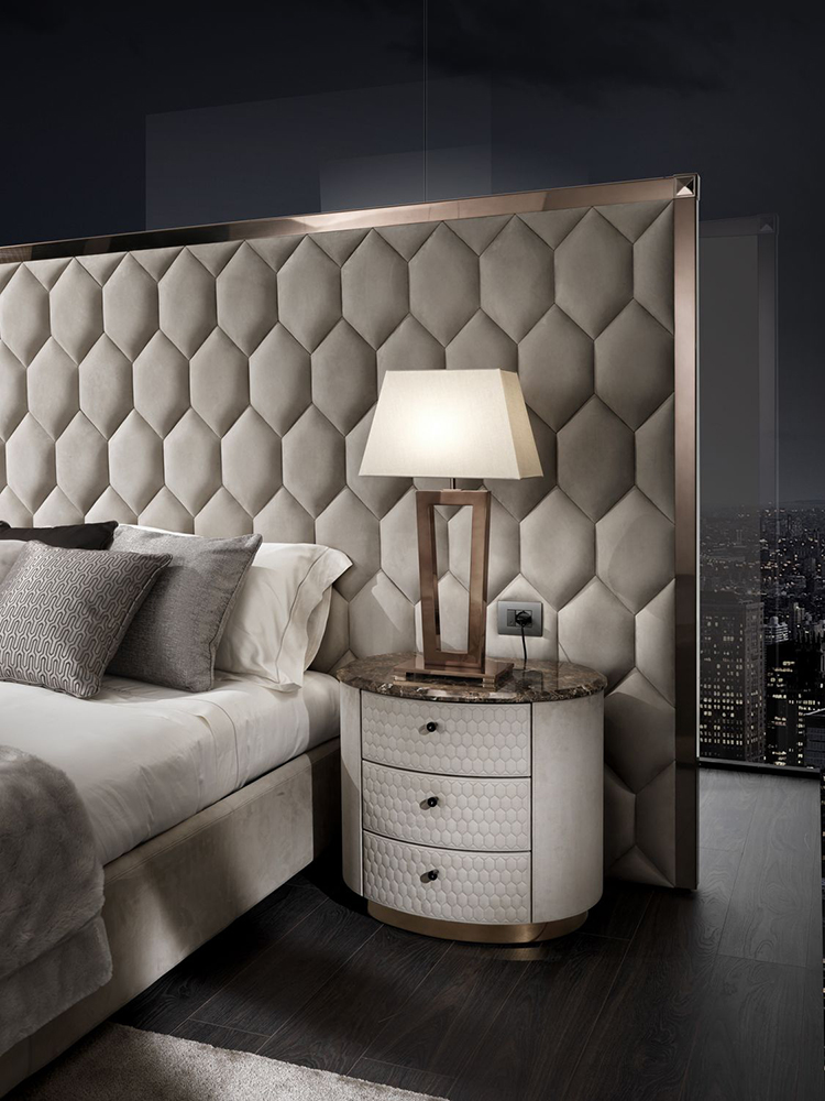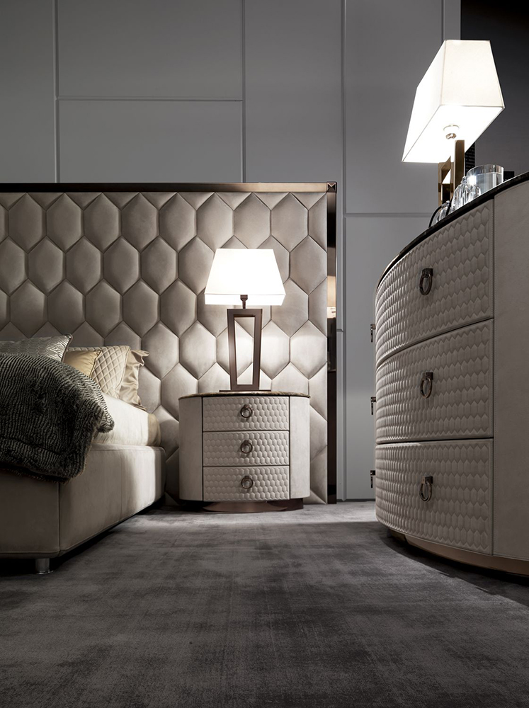 Кровать с большим изголовьем Envy Maxi украшена стеганой отделкой изголовья. Она прекрасно дополнит интерьер спальни в современном стиле. Рельеф в форме шестиугольников формируется при помощи аккуратных машинных стежков. Деревянный каркас обшит мягкой обивкой. Кровать будет сочетаться с прикроватными тумбочками и креслами из этой же серии.