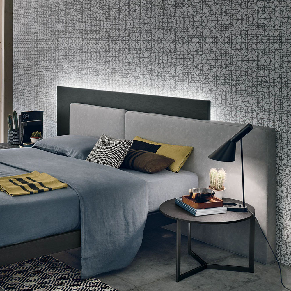 Halifax - не просто кровать, но и самобытный элемент интерьера, обращающий на себя внимание. Дизайн изголовья составлен из разнообразных элементов, форм и материалов, а свет выгодно подчеркивает его особенности.
