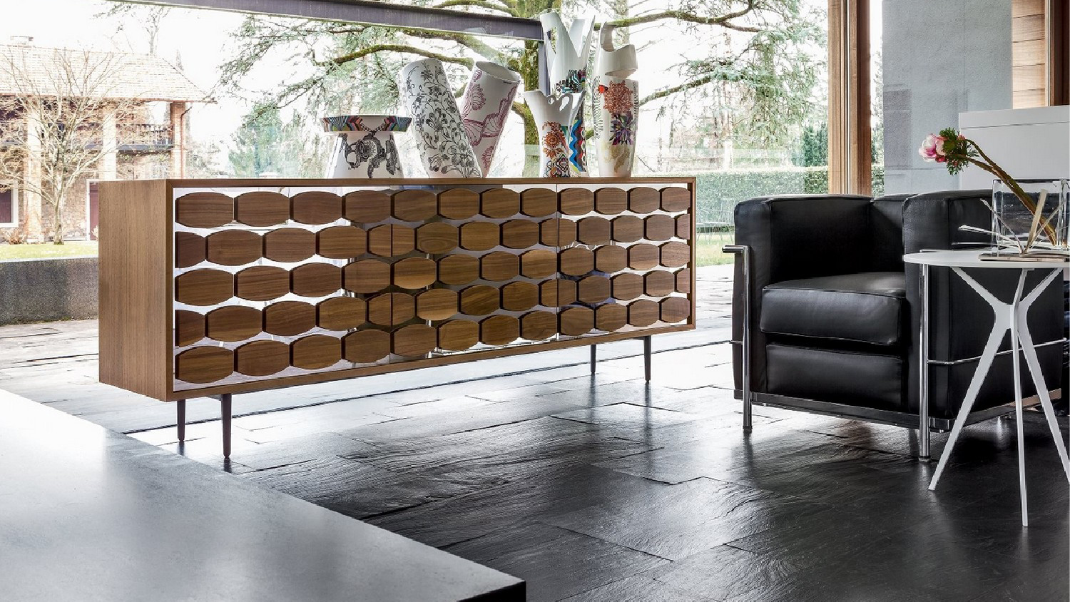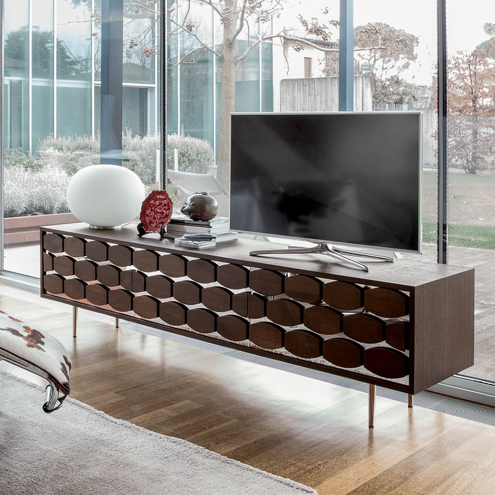 Набор мебели для вашей гостиной, где пространства и линии играют фундаментальную роль. Тумбы под телевизор и серванты Honey выделяются своей отличительной деревообработкой — грецкий орех Каналетто, термообработанный темный дуб и лучший выбор стекла.