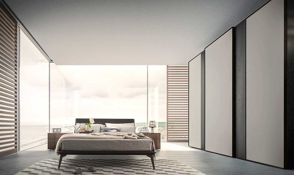 The Frame wardrobe has a sliding door and integrated louvre and is an essential accessory in a respectable room: it completes the room dedicated to relaxation, optimizing the spaces and embellishing them. There are numerous finishes both for the fronts and for the interiors.