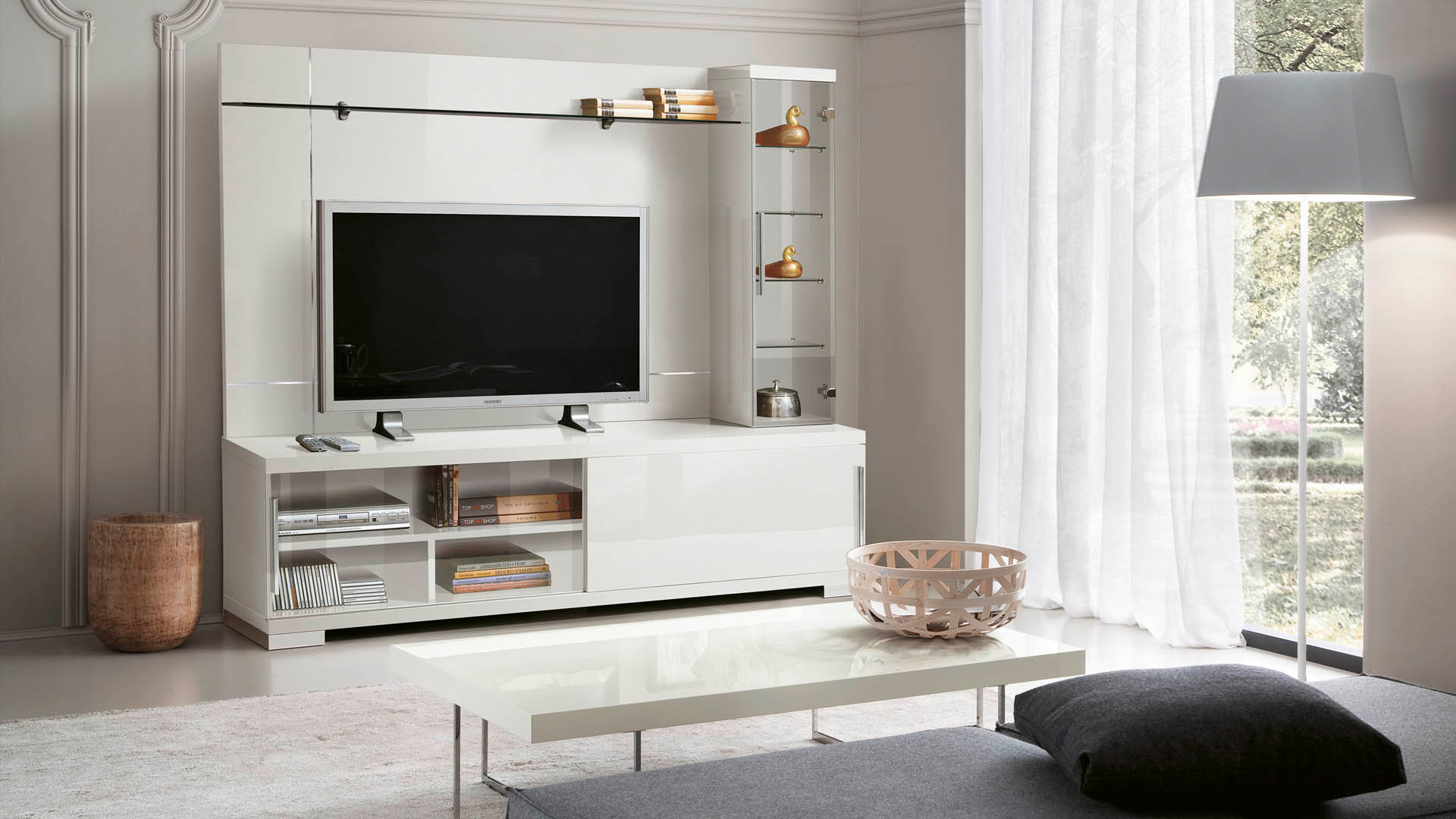Asti TV Stand features a White High Gloss finish and stunning Chrome accents which makes it truly gorgeous and emphasizes luxury design.