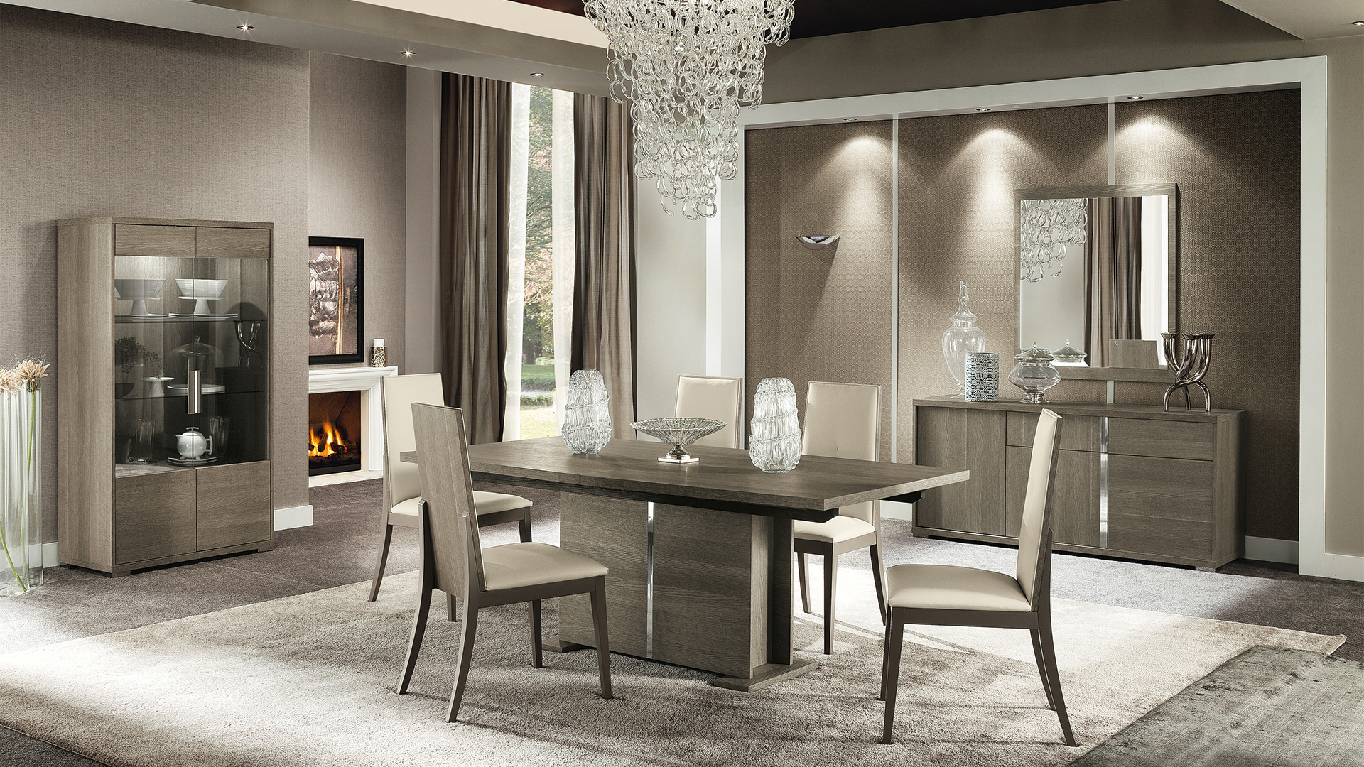 Tivoli Dining Room Set is made of premium quality wood veneer materials, eco-leather, and chrome accents. This collection offers everything needed to make your dinette area stylish and functional. Rectangular Dining Table is available in two sizes, both with extension that is kept inside. Gorgeous matching chairs are upholstered in soft and durable eco-leather that is super easy to keep clean.