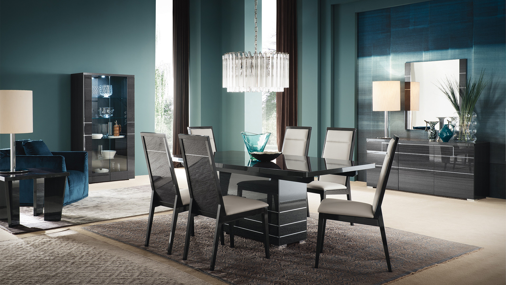 The Versilia Dining Set is a very elegant collection and emphasizes modern design with luxury aspects. This set features a beautiful Koto High-Gloss finish and Chrome accents.