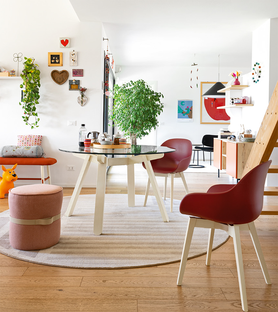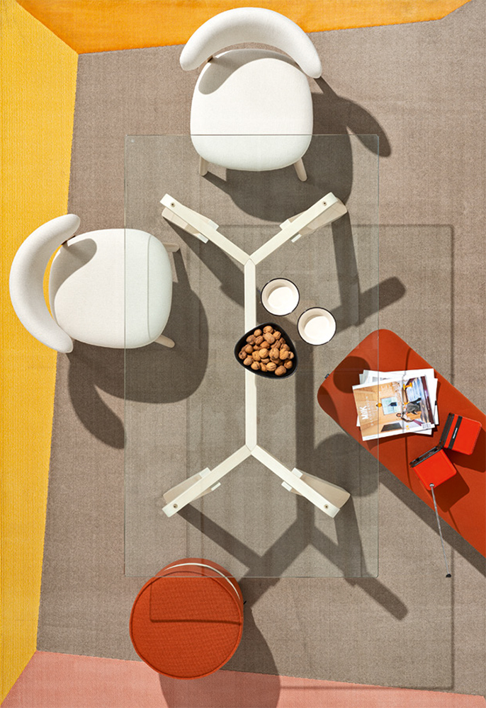Peeno is an exquisite architectural creation of intricately interlocked pieces of wood. The various parts interweave to create a non-extending table upon which rests a round top made from transparent tempered glass.