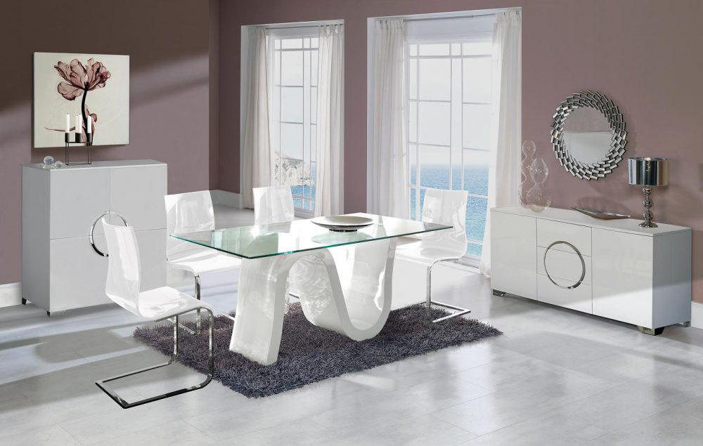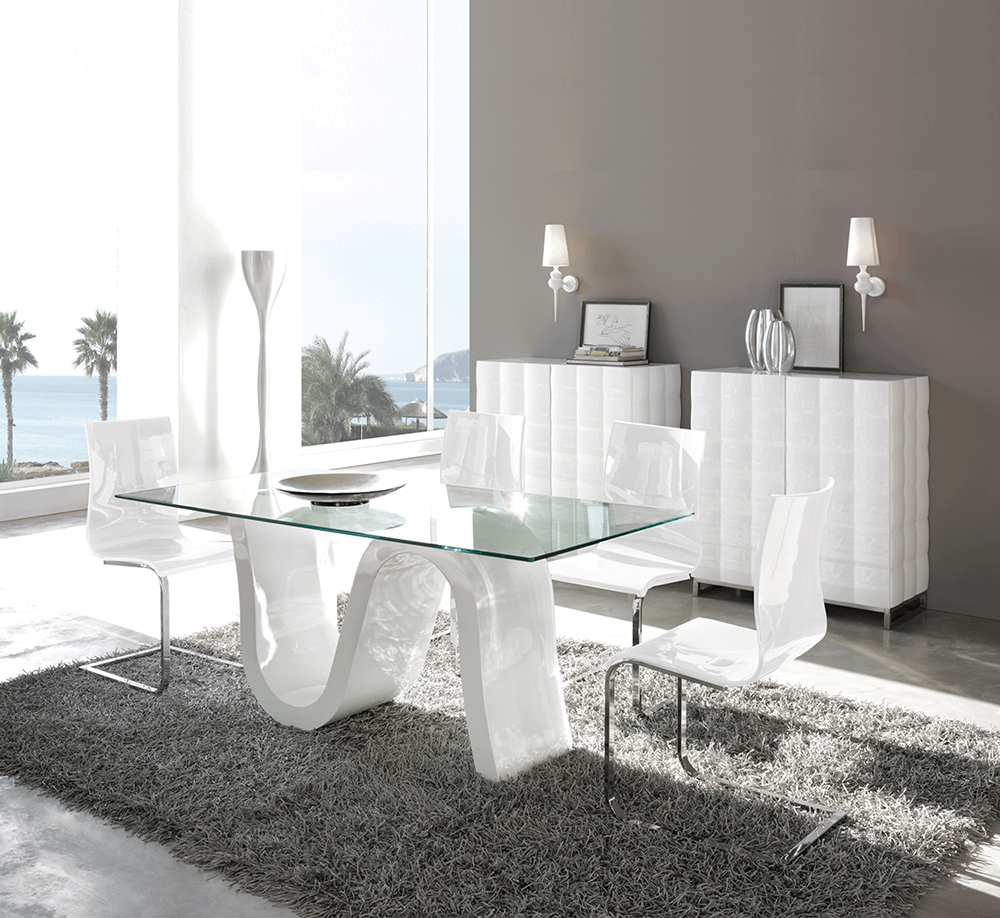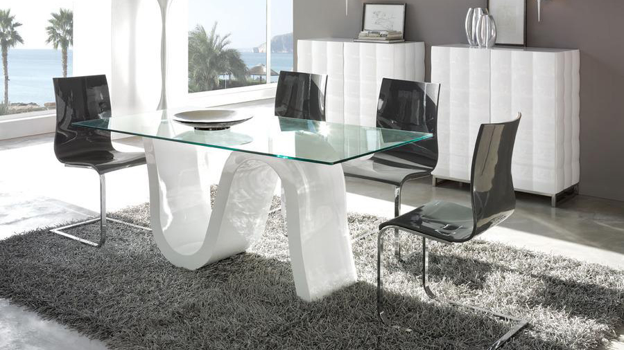 Dining table in wood with tempered glass top.