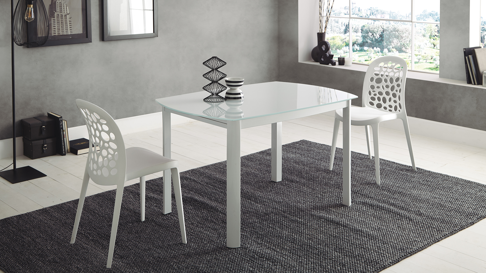 Oval Dining table extensible. Tempered glass top 10 mm and metal legs.