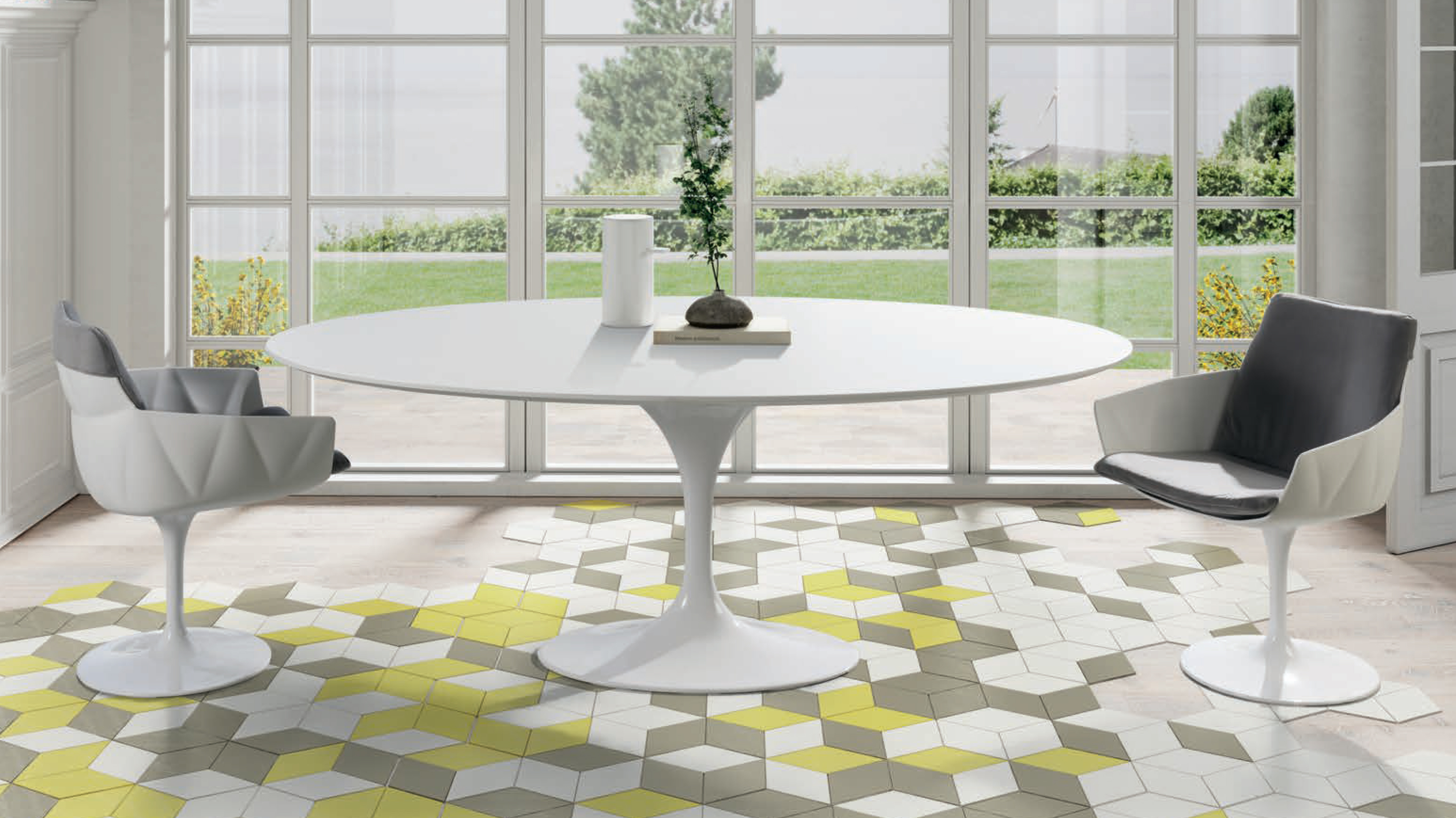 Designer Oval Dining Table. Wooden top lacquered and cast aluminium base.