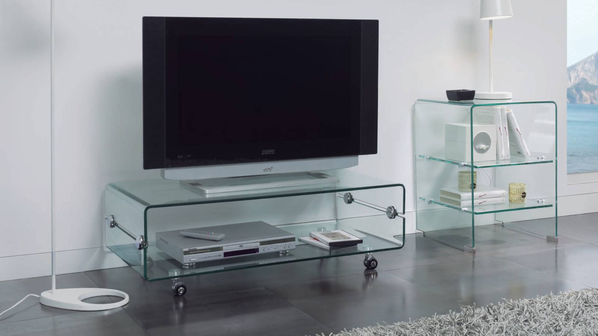 Dresser with tempered clear glass. 2 shelves. Packed in wood crate.