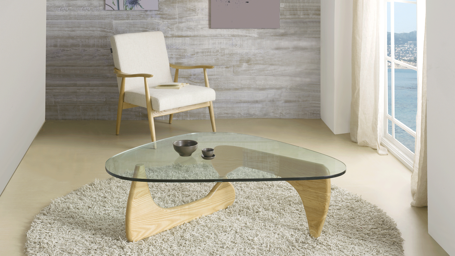 The tabletop is made of 19mm tempered glass. Original MDF legs in ash color.