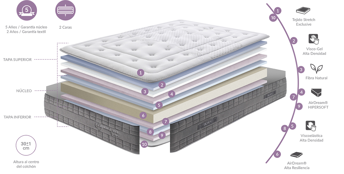 An improvement to any mattress available on the market. Dupen Luxe mattress combines two different materials to offer all the advantages during all seasons.