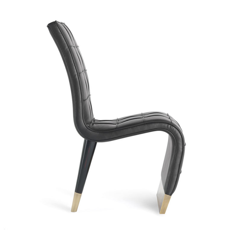Sinuous lines and refined personality: these are the main characteristics of the Bonnie chair, whose original shape with the backrest continuing on the seat is enriched by an elegant capitonné manufacturing. The sloping legs, made of wood and with bronzed brass tips, contribute to lend the Bonnie armchair an exclusive and timeless charm.