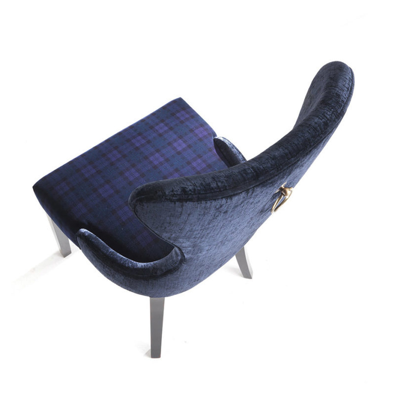 Sinuous lines and enveloping shape for the Pretty chair. The refined detail of the small brass handles recalls the classical style while the upholstery in fabric or leather from the Gianfranco Ferré Home collection make the chair the perfect element for an eclectic setting.