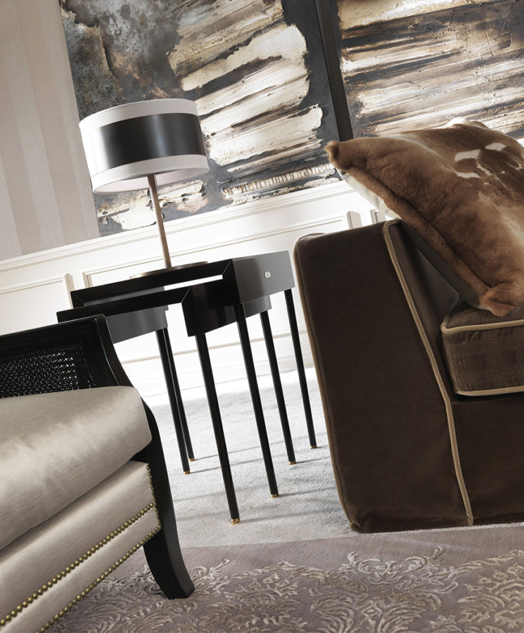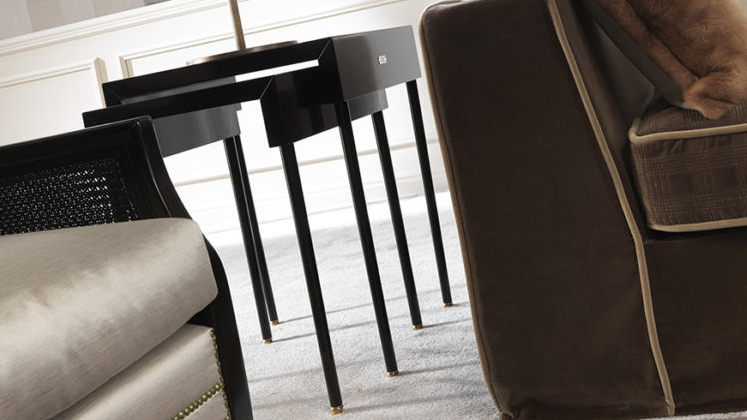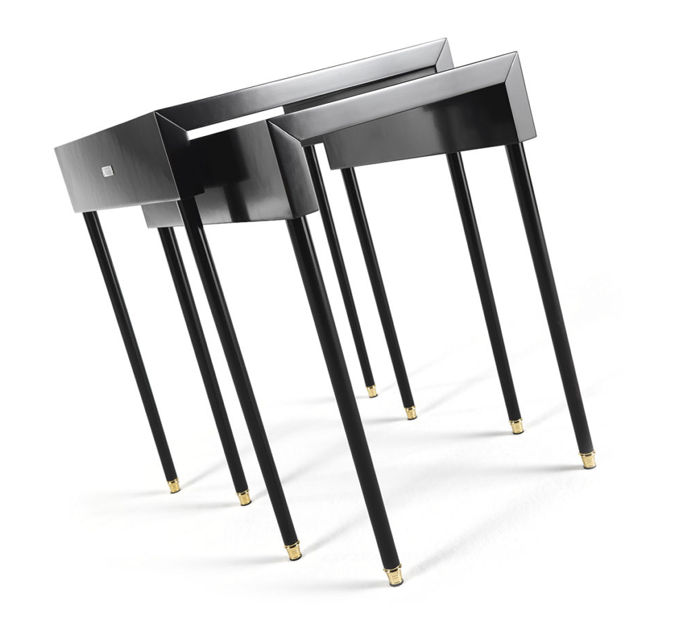 Pair of stackable side tables in beech wood. Black lacquered finishing.