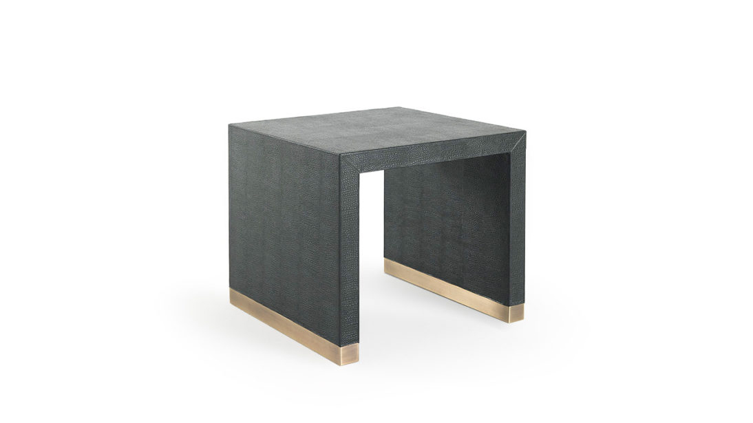 Leather and metal: contrasting textures and materials for a table with a minimalist yet sophisticated design, characterized by the soft leather upholstery and by the bronze finish of the bases. The combination with the Flair table allows you to create original geometric compositions.