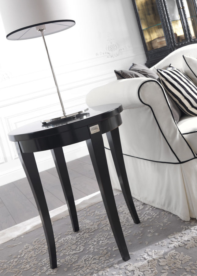 Side table with structure in beech wood. Black lacquered finishing.