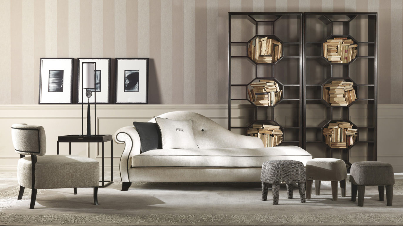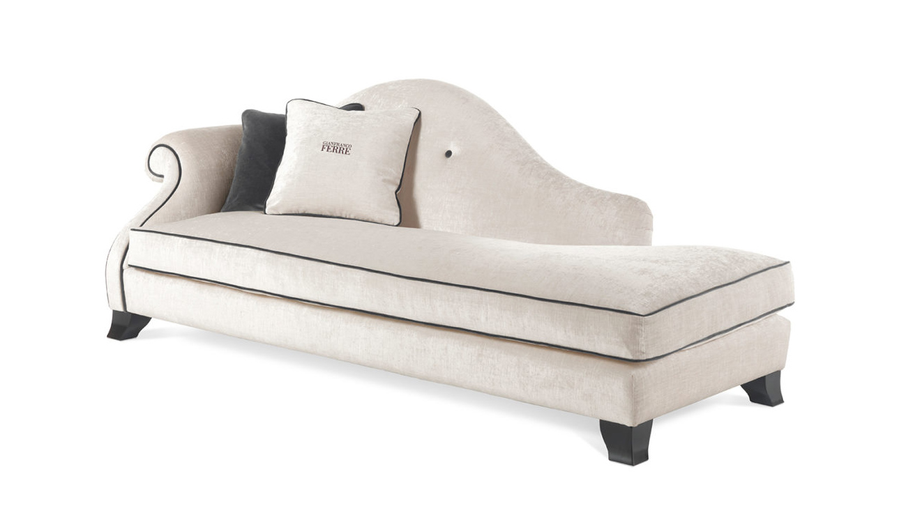With its sinuous and captivating shapes, exalted by the soft curve of the armrest and the fabric upholstery with contrast piping, the Harmony dormeuse is a timeless piece of furniture with an unmistakable Gianfranco Ferré style.