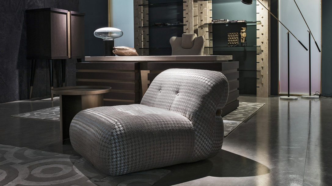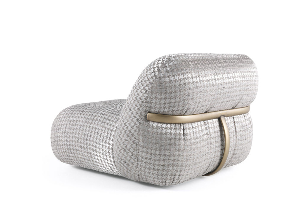 Soft shapes and sophisticated elegance for Leith armchair, characterized by a refined aesthetic language that is expressed in the flawless tailoring, in the compact proportions and in the details with strong visual impact. The upholstery adds a note in typical Gianfranco Ferré Home style.