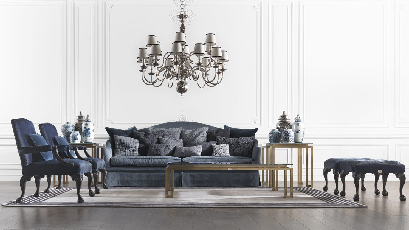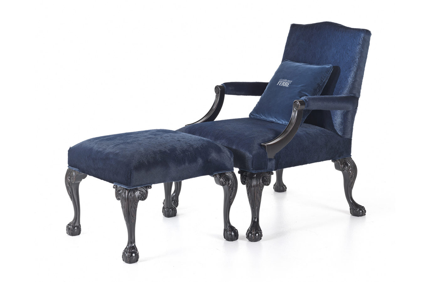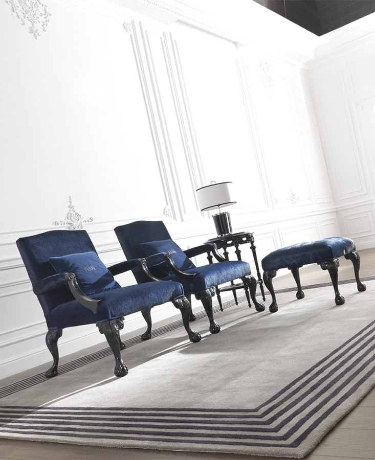 An original mix of styles for the Paul armchair with lion-paw armrests and feet and an elegant blue velvet upholstery. A furniture with a seductive vintage charm that perfectly suits into classical and luxury contexts.