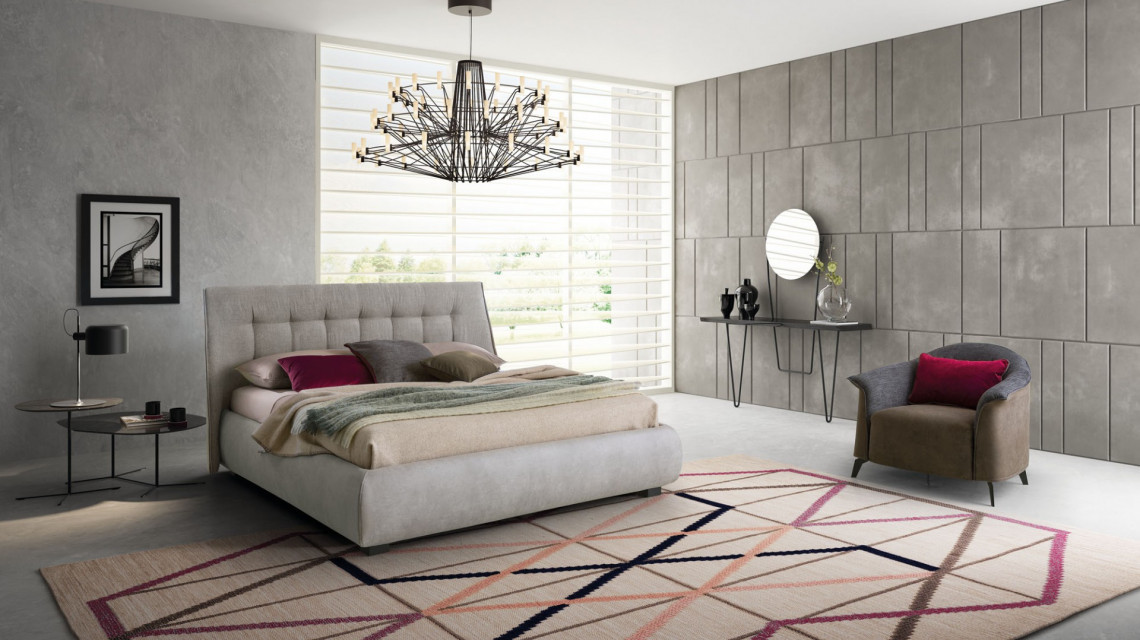 Guscio`s geometry is dominated by a grid of winding waves, which, by inviting sleepers to abandon all resistance, converge with energy towards a central core: that is, a firm headboard that gently stretches its edges until it subsumes the platform. Volumes are here exploited to shield and protect, thus guarding the priceless experience of sleep, which is rekindled by the fine quilt of the upholstery.