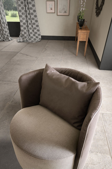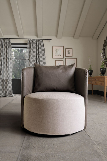 By joining the robust roundedness of a soft pouf with the embracing resolve of a gently padded back, it is possible to appreciate how such an overlooked article may suddenly be transformed into a distinguished piece of furniture. With its structural autonomy, this chair aims to combine volumes and experiment with their possibilities, thus achieving unexpected creative outcomes.