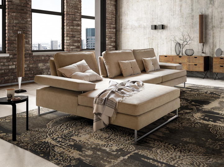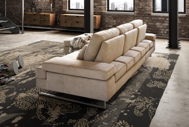 Elegance and composure characterize, at first glance, this sofa which appears refined and quiet. The special sliding feet, however, anticipate the true soul of Luis: movement. An innovative backrest mechanism increases or decreases at will the seating area, whilst the reclining armrest allows for variety of body postures, making it a multi-faceted accessory.