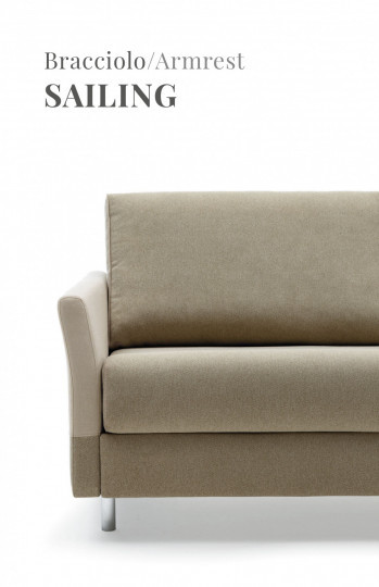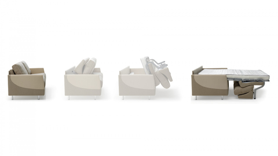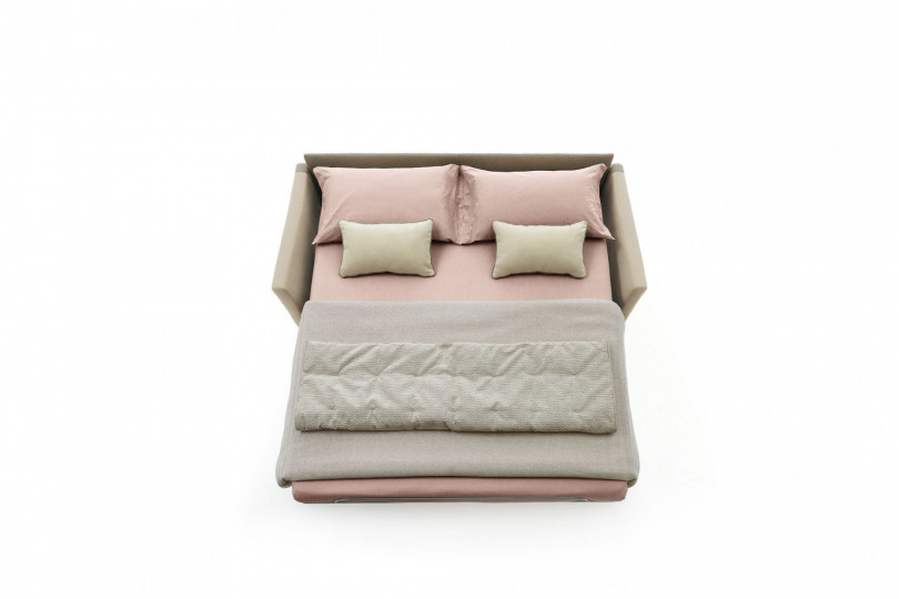 Maldives: an enchanting set for daytime amusement, and an atoll of peace and romantic rest at night: its elegant and slender feet make it look like an archipelago floating above ground. Such a couch, thanks to its wide seat and the embracing back promises to harbour unforgettable everyday moments by sheltering you from the worries of ordinary cleaning and upkeep: in fact, its fabric may be removed for cleaning purposes and can be easily machine-washed. At sunset, such original amusement island will easily transform itself into a soft and cosy queen-sized bed, which is indeed the ideal nest of nocturnal relax.