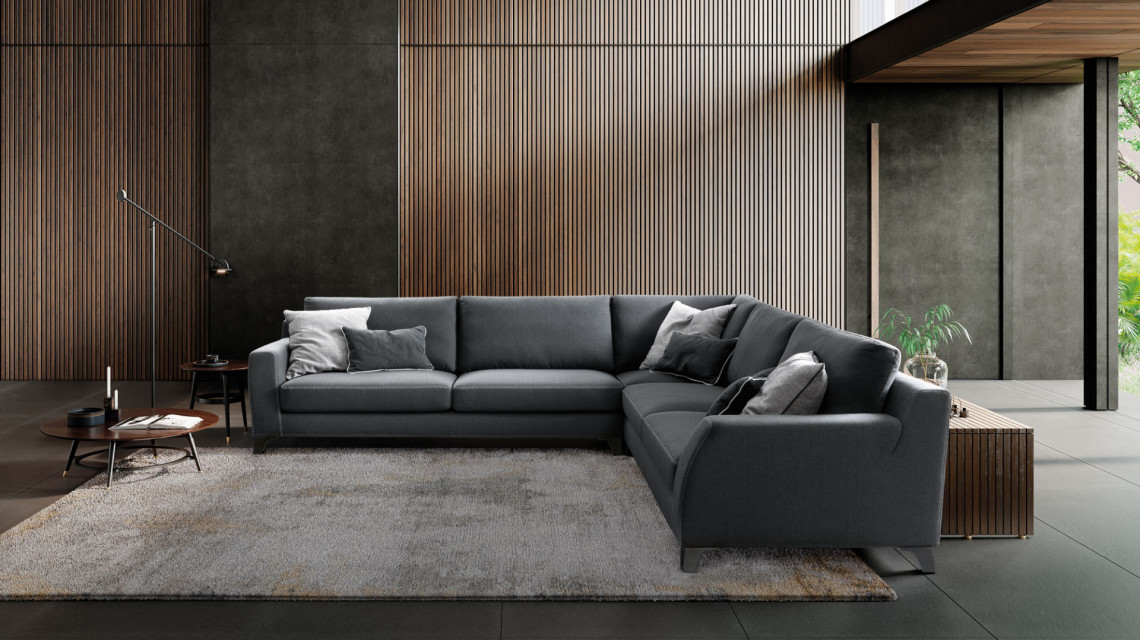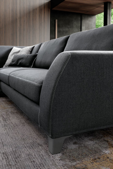Conceived with a clever structure, the Vincent sofa calibrates an elegant refinement of compositional trajectories, whose fundamental lines of force converge with the fluid lines of modern, raised stitching or in the generous central ottoman, uniting two segments of pure comfort.