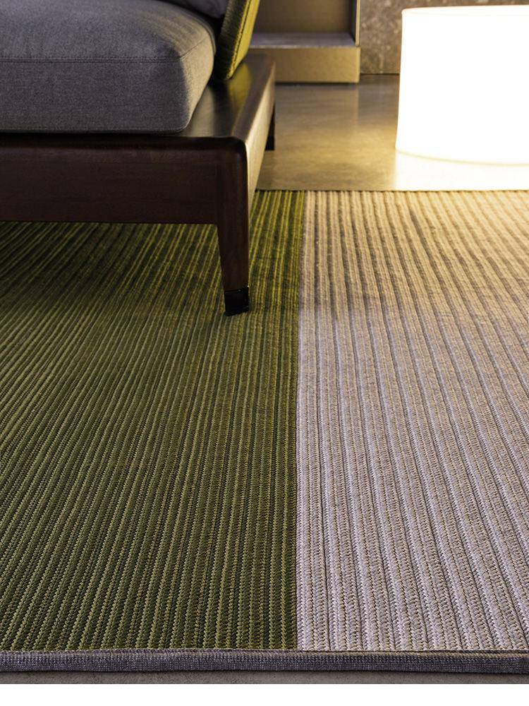 The colors of the rug take their cue from nature and coordinate brilliantly not only with the structures in iroko wood and the Lifescape textiles, but also with various types of flooring.